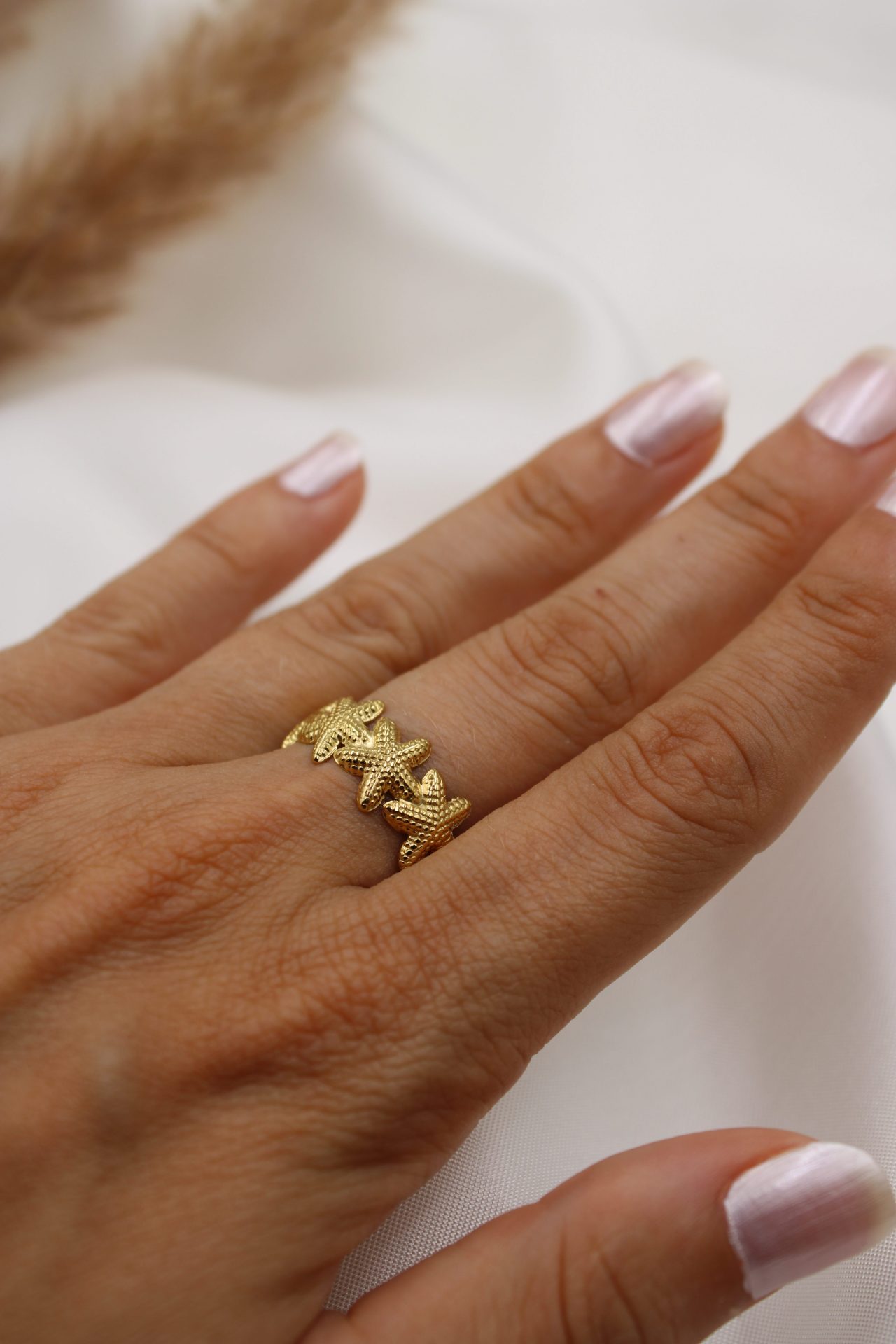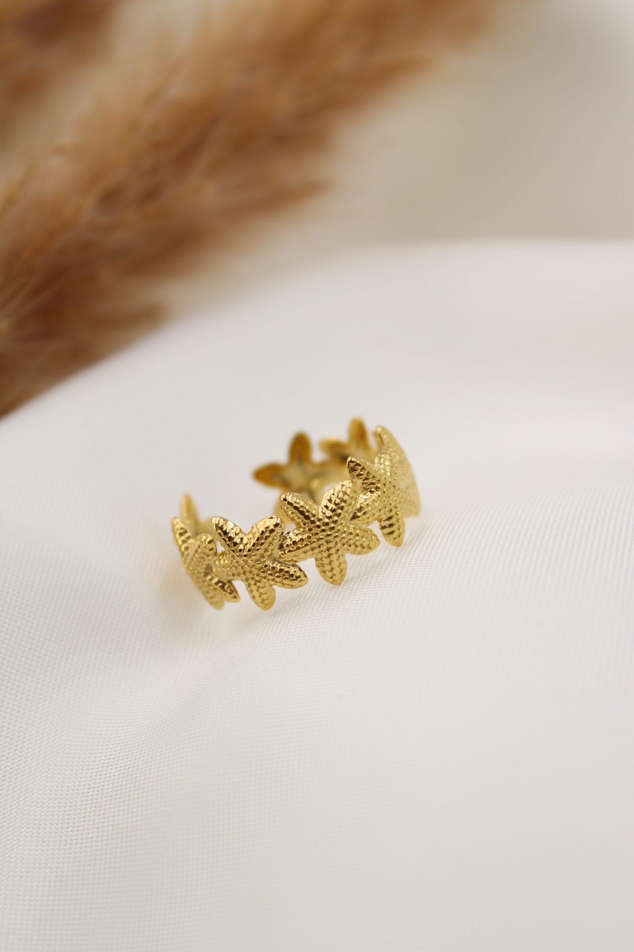 Plongez dans l’univers enchanteur des océans avec notre Anneau Étoile de Mer Dorée . Ce bijou exquis capture la beauté des fonds marins, mettant en avant une étoile de mer délicatement sculptée, évoquant la sérénité et le mystère de la mer.