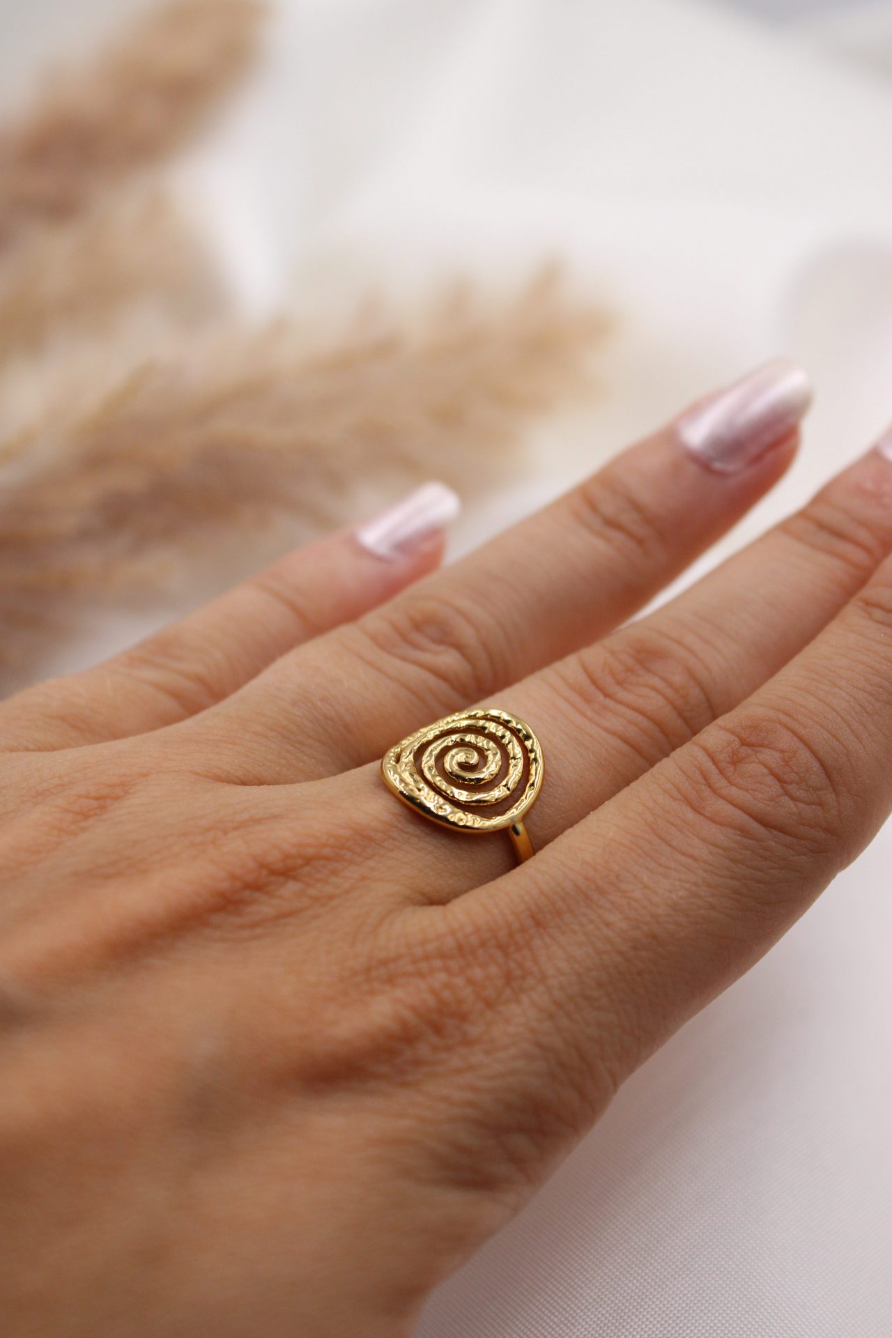 Ajoutez une touche d’élégance à votre collection de bijoux avec cette magnifique bague en or. Son design en spirale unique apporte une dimension artistique, tandis que la texture délicate évoque un charme moderne et raffiné.