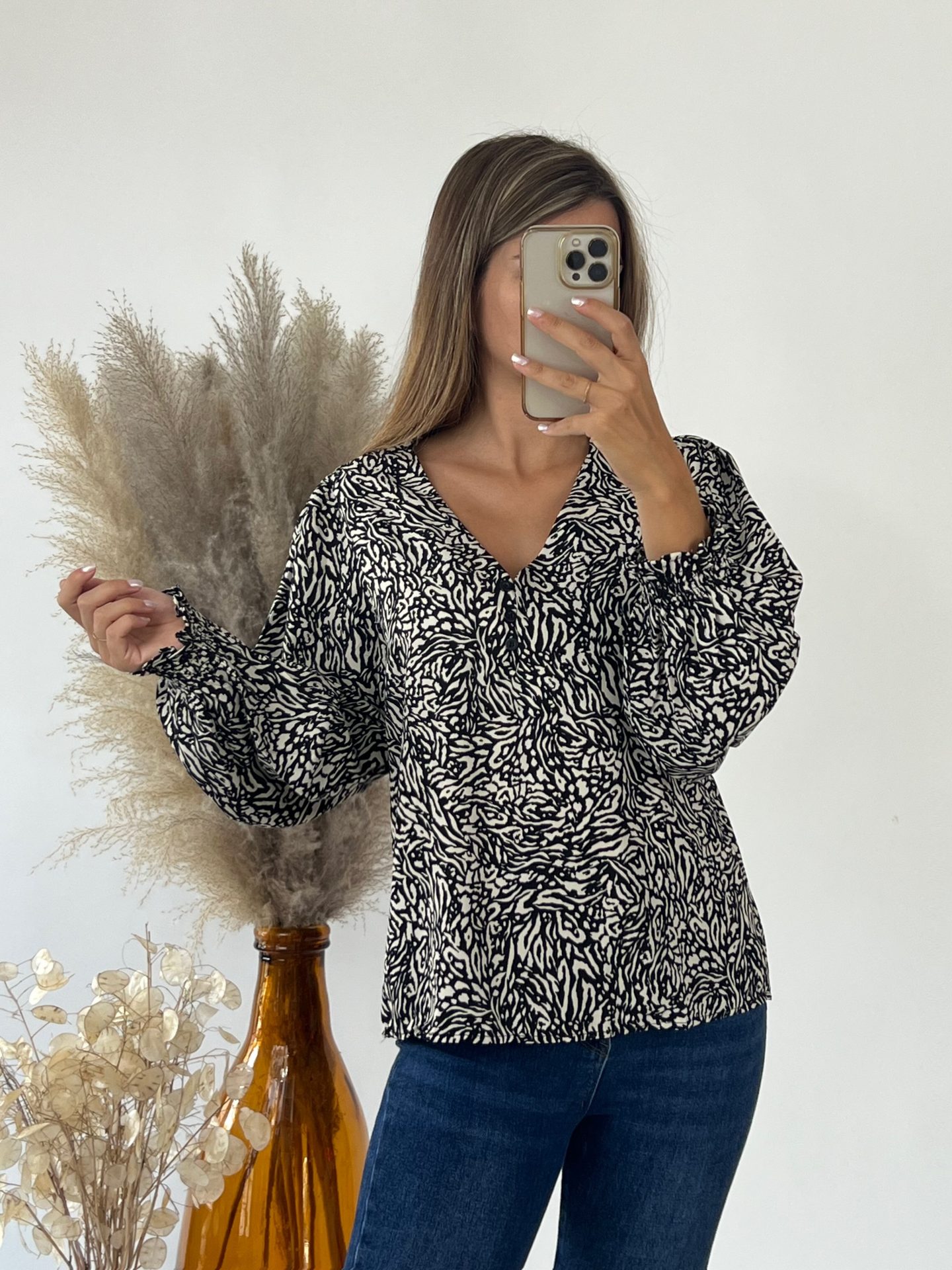 Tellement mim’s dans cette blouse ! Avec son imprimé, son coloris noir & blanc et ses boutons, elle est craquante. Ne passez pas à côté de cette pièce qui semble avoir été faite à votre image.