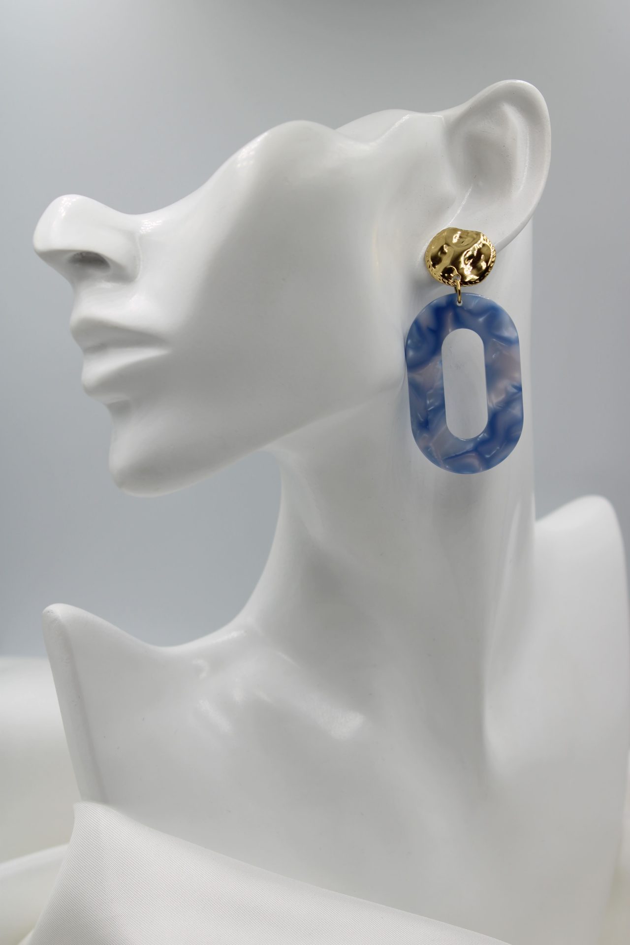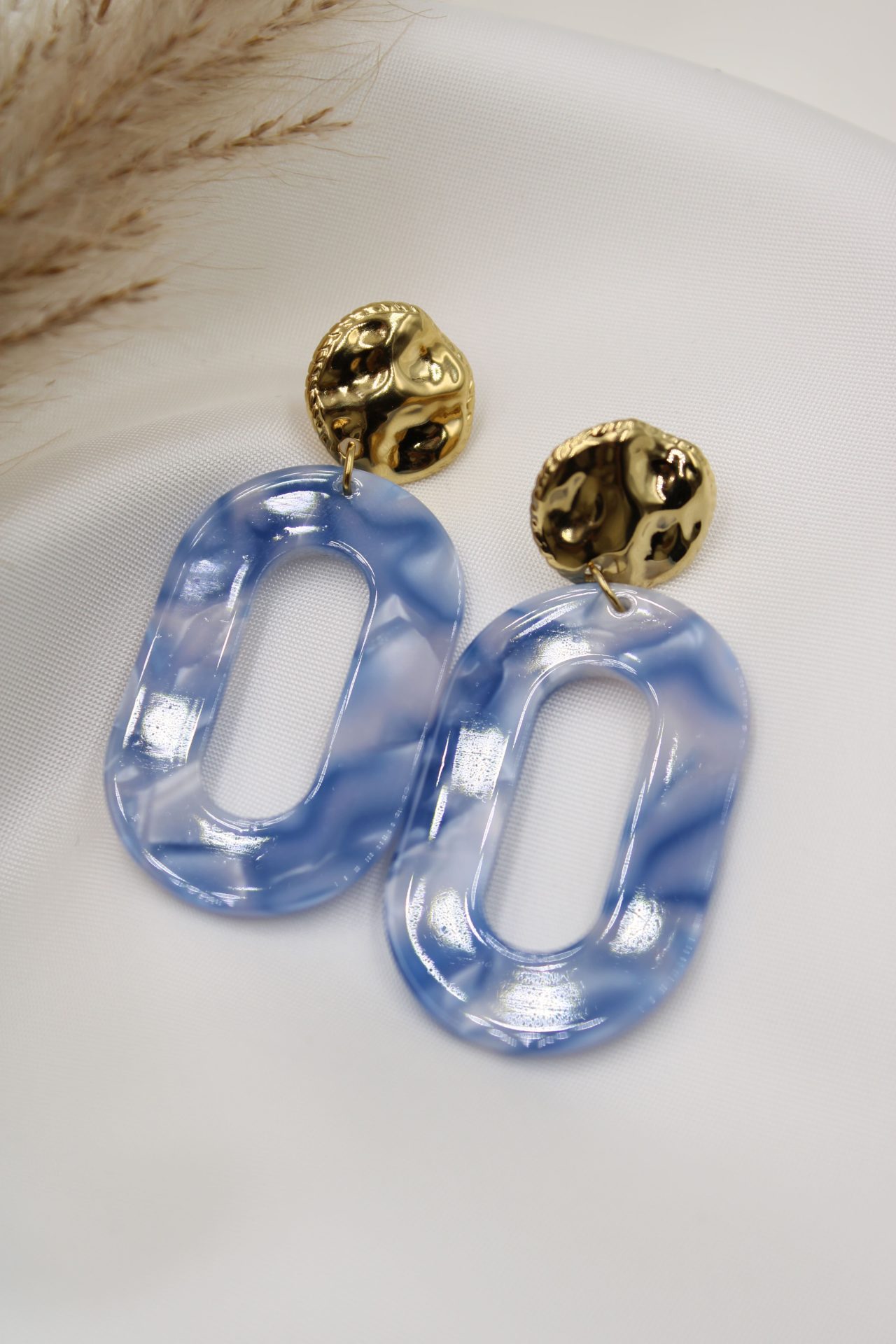 Découvrez nos boucles d’oreilles Cielo, une véritable ode à la beauté du ciel. Avec leurs composants en résine marbrée de bleu clair et leurs accents en métal texturé doré, ces boucles d’oreilles ajoutent une touche de sophistication à n’importe quelle tenue. Légères et élégantes, elles sont parfaites pour illuminer vos journées et rehausser vos soirées. Portez-les avec fierté et laissez-vous emporter par leur charme céleste.