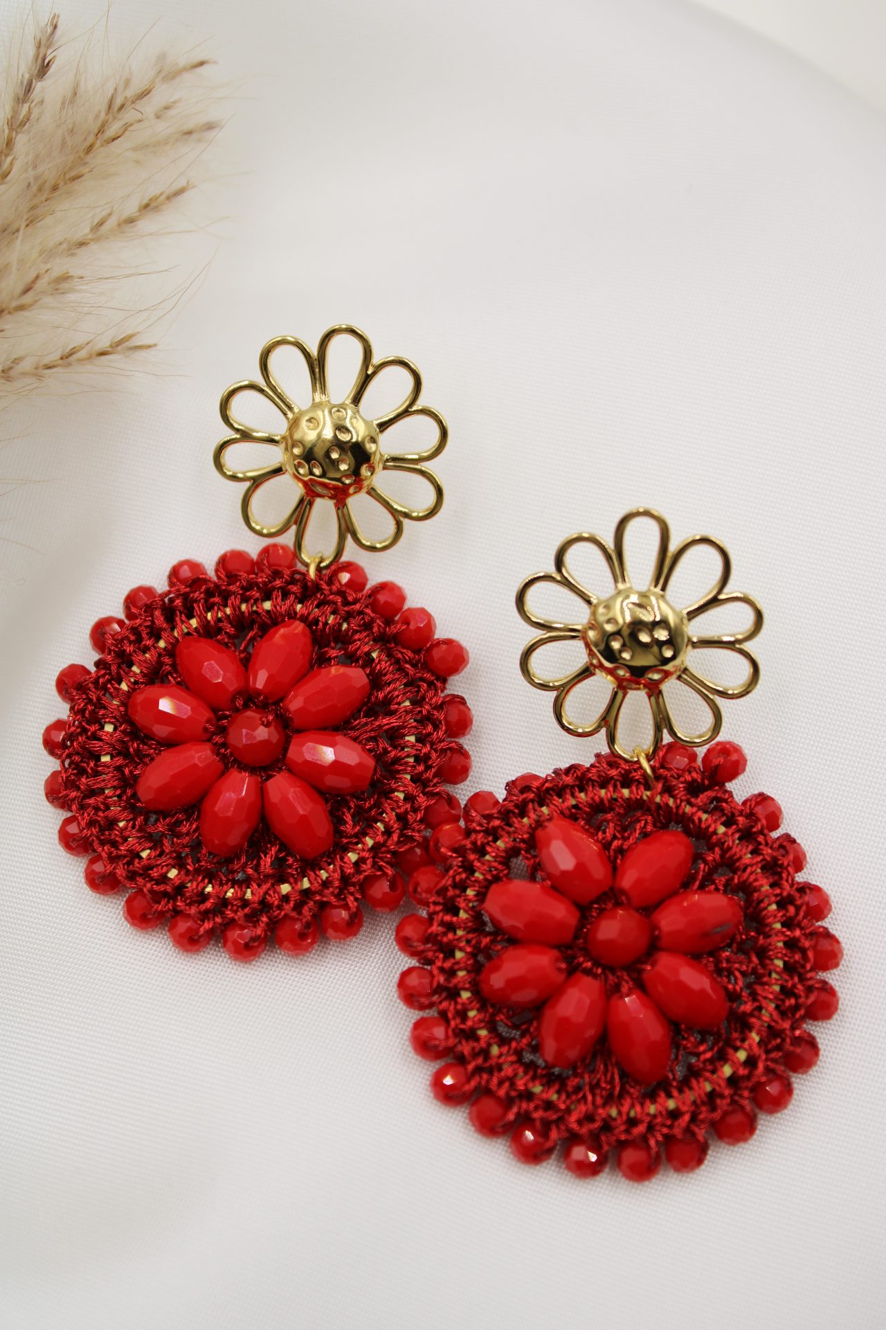Ces boucles sont vraiment spéciales avec leurs motifs de fleurs délicates. Les fleurs ajoutent une touche de fraîcheur et de romantisme, comme un jardin en plein épanouissement. La combinaison du rouge vibrant avec les détails floraux crée un contraste saisissant, rendant cette paire unique. Elles sont parfaites pour exprimer ta personnalité tout en ajoutant une note joyeuse à n’importe quelle tenue.