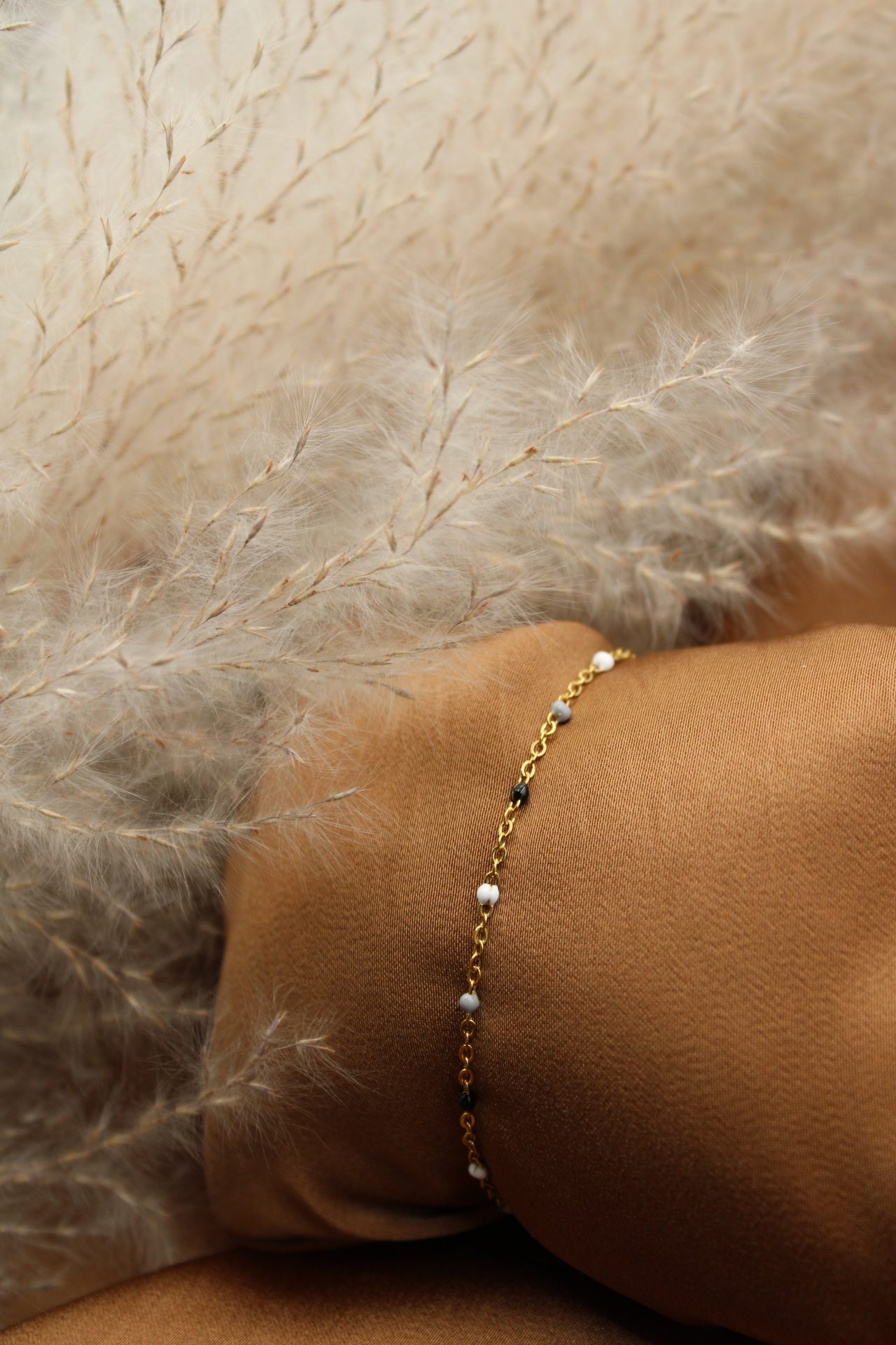 Bracelet Fin à Pierres Blanches, Grises et Noires