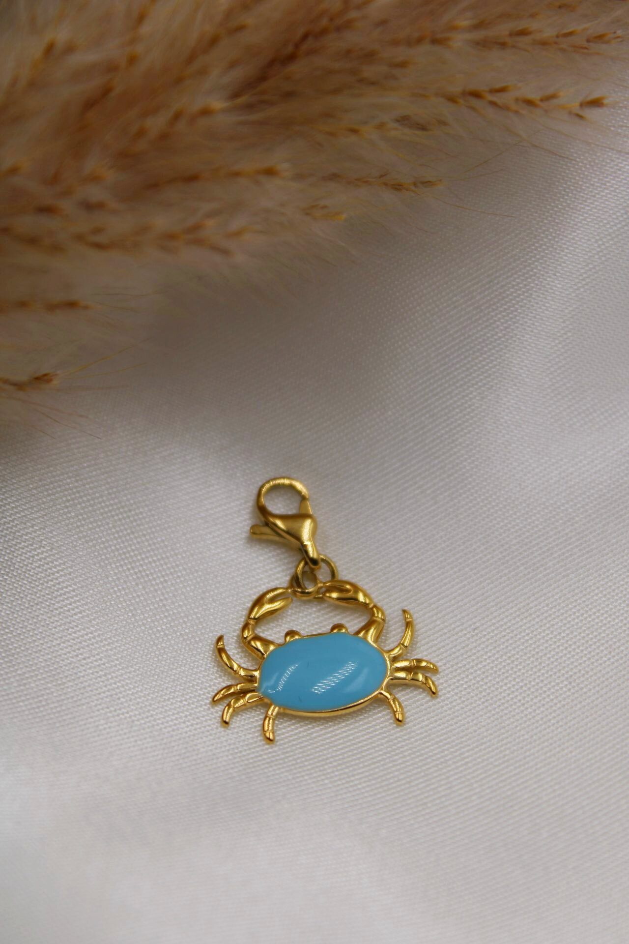Mettez le cap sur l’élégance estivale avec ce magnifique pendentif crabe doré ! Son design ludique et sa jolie finition dorée, accentuée par un cabochon bleu turquoise éclatant, rappellent la beauté des rivages tropicaux. Ce charm est idéal pour apporter une note de fraîcheur et d’originalité à vos colliers et bracelets.