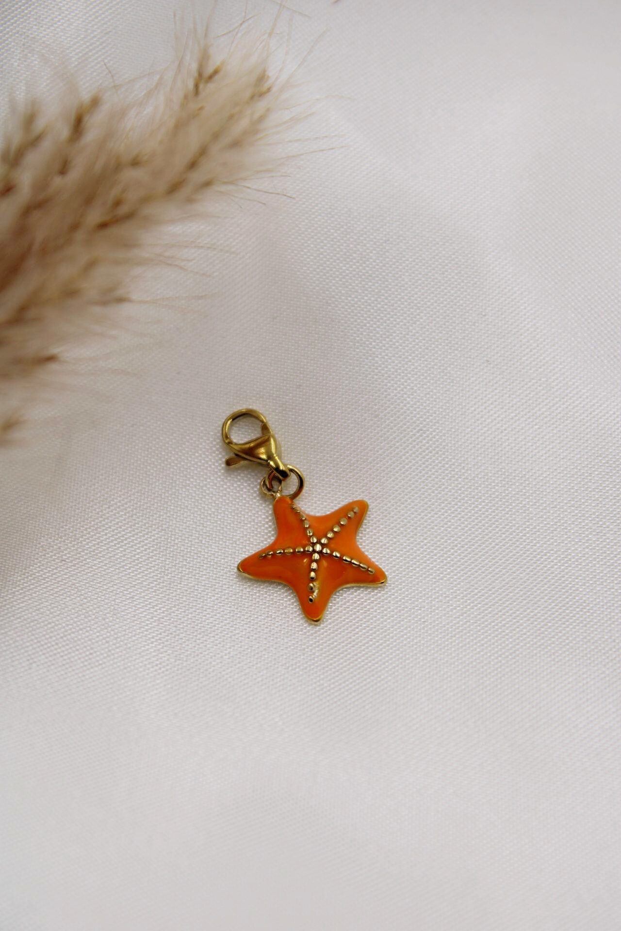Ce charmant pendentif étoile de mer orange vif apportera une touche d’éclat estival à vos colliers et bracelets, orné de détails dorés, il est à la fois résistant et élégant. Sa couleur vibrante et sa petite taille en font un accessoire discret mais accrocheur.