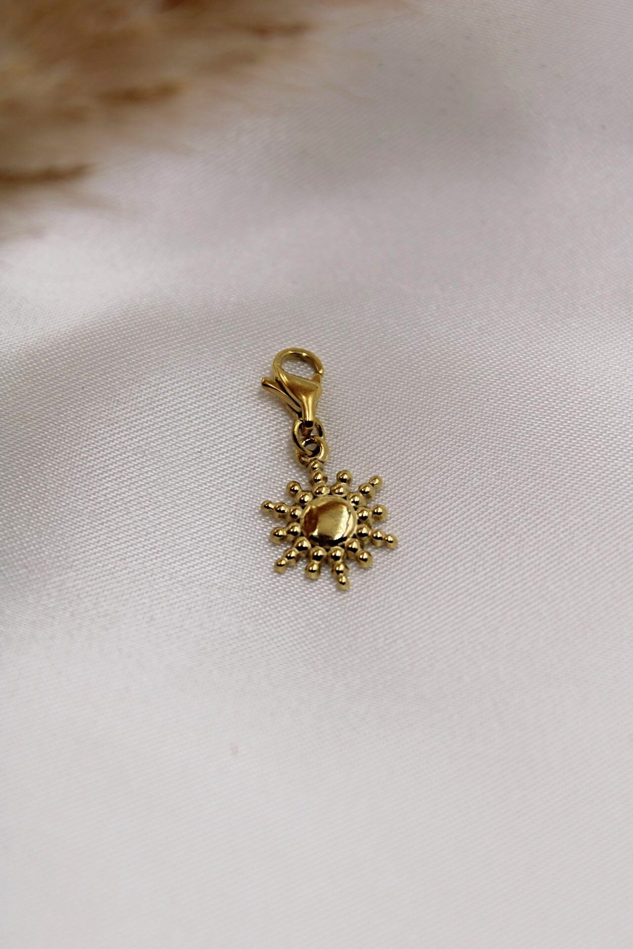 Illuminez votre style avec ce superbe pendentif soleil doré ! Ses détails minutieux et son éclat radieux apporteront une touche de lumière à vos colliers et bracelets. Attachez-le facilement et laissez le soleil briller sur toutes vos tenues. Un accessoire indispensable pour égayer votre quotidien !