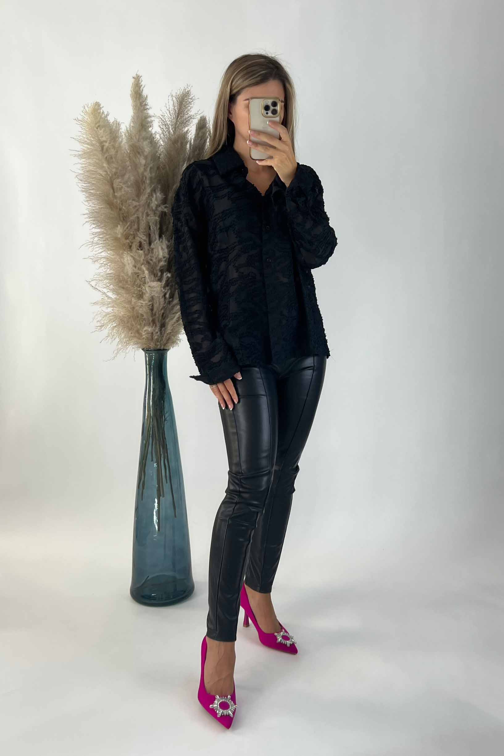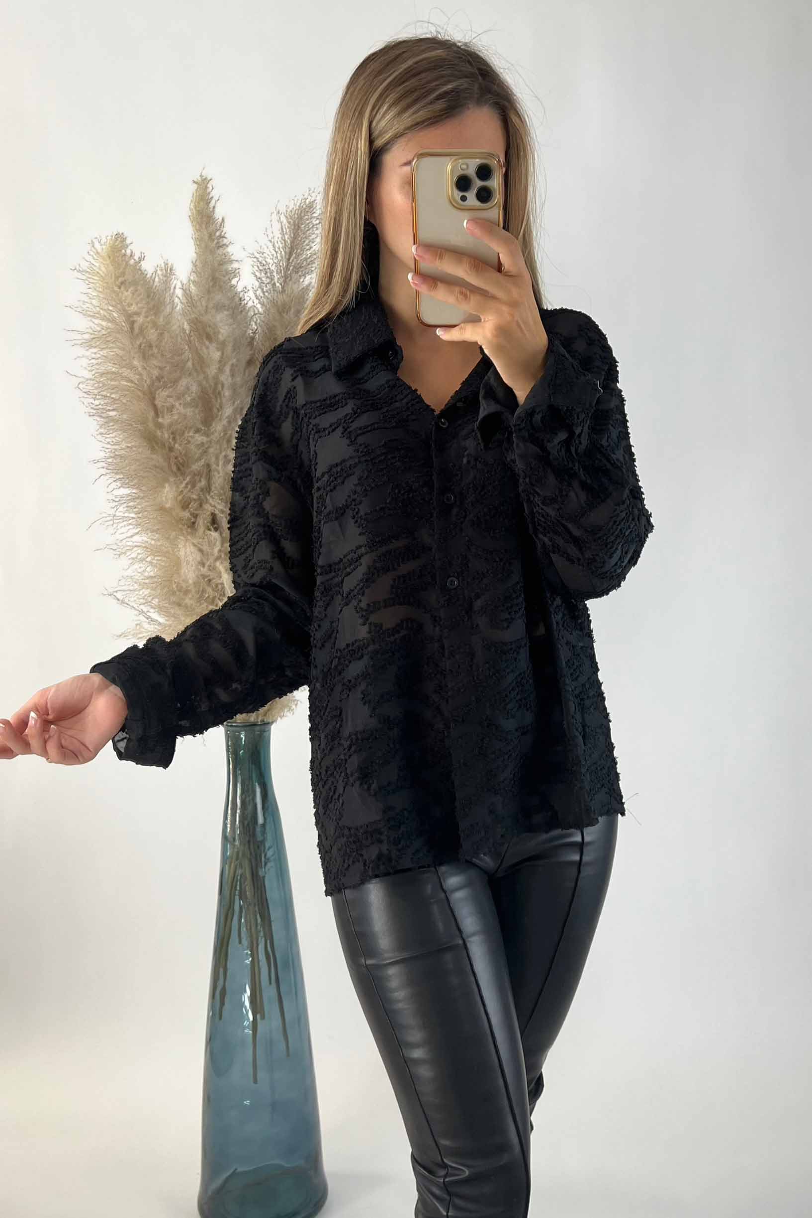 On aime tellement sa transparence, son détail plumetis et son imprimé abstrait de couleur noire, impossible d’y résister.