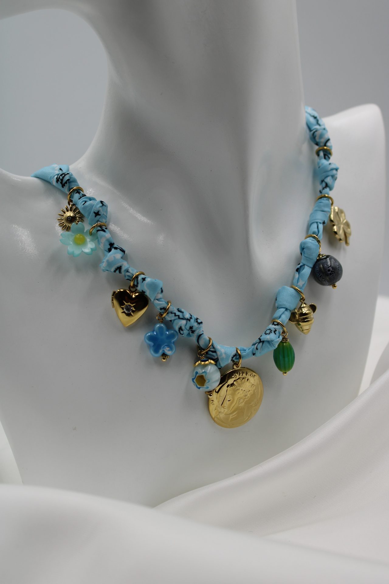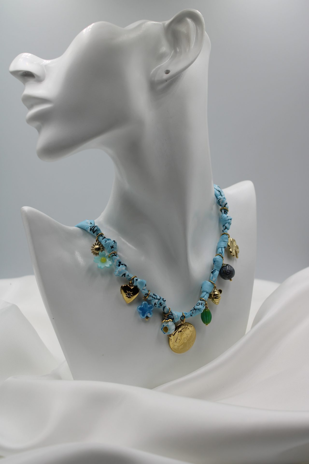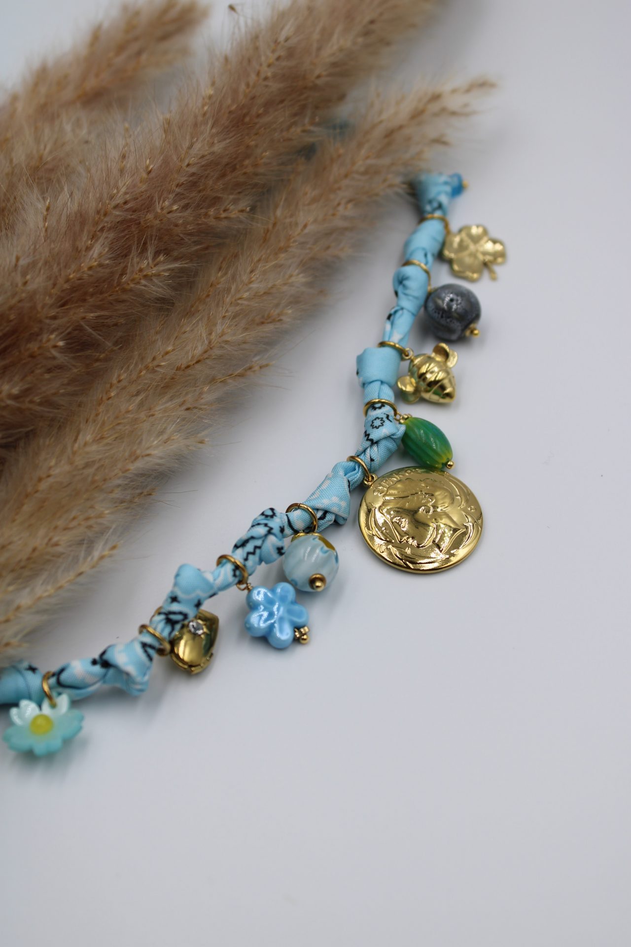 Découvrez notre collier, une pièce unique qui allie élégance et originalité. Ce collier est composé d’une cordelette en tissu, ornée de charms enchanteurs tels qu’une fleur, un pendentif en forme de cœur, un trèfle à quatre feuilles, une abeille, une pièce de monnaie et des perles colorées. Chaque détail a été soigneusement pensé pour créer un bijou à la fois léger et plein de caractère. Que ce soit pour une sortie décontractée ou pour ajouter une touche de fantaisie à une tenue plus habillée, ce collier saura se démarquer.