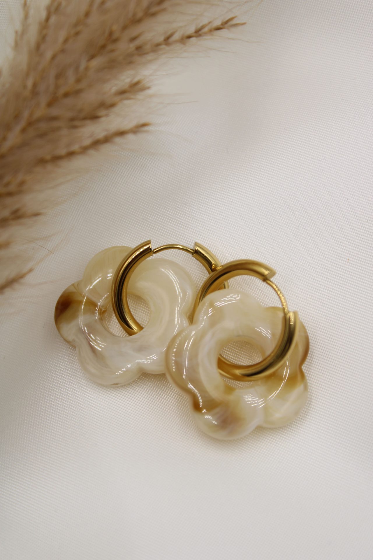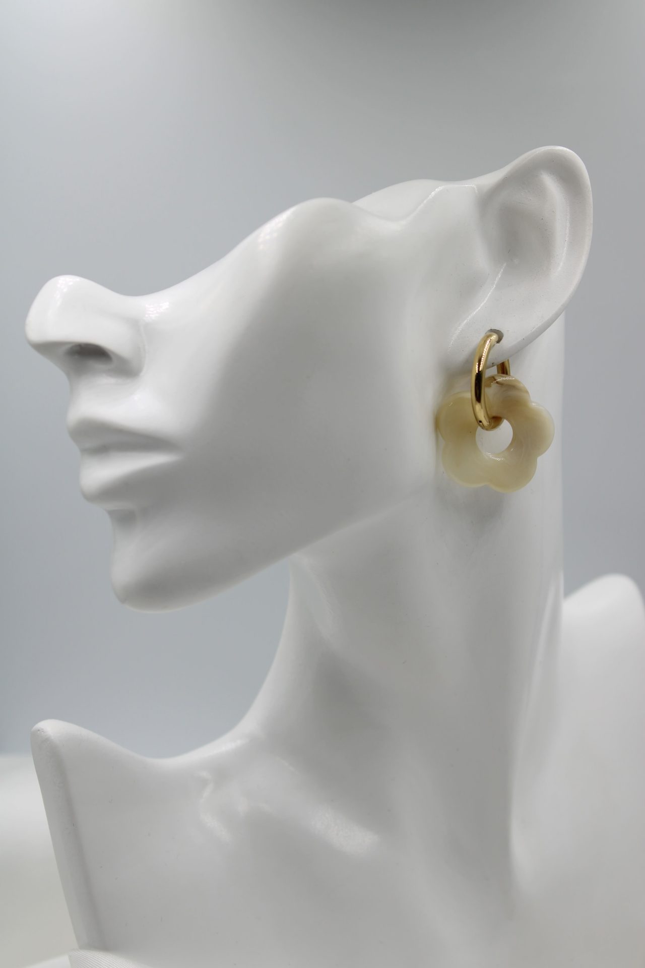 Ces créoles sont un véritable bijou qui allie élégance et originalité. Avec leur finition dorée, elles mettent en valeur de délicates accents en résine en forme de fleurs. Ce design unique apporte une touche romantique et bohème à n’importe quelle tenue.