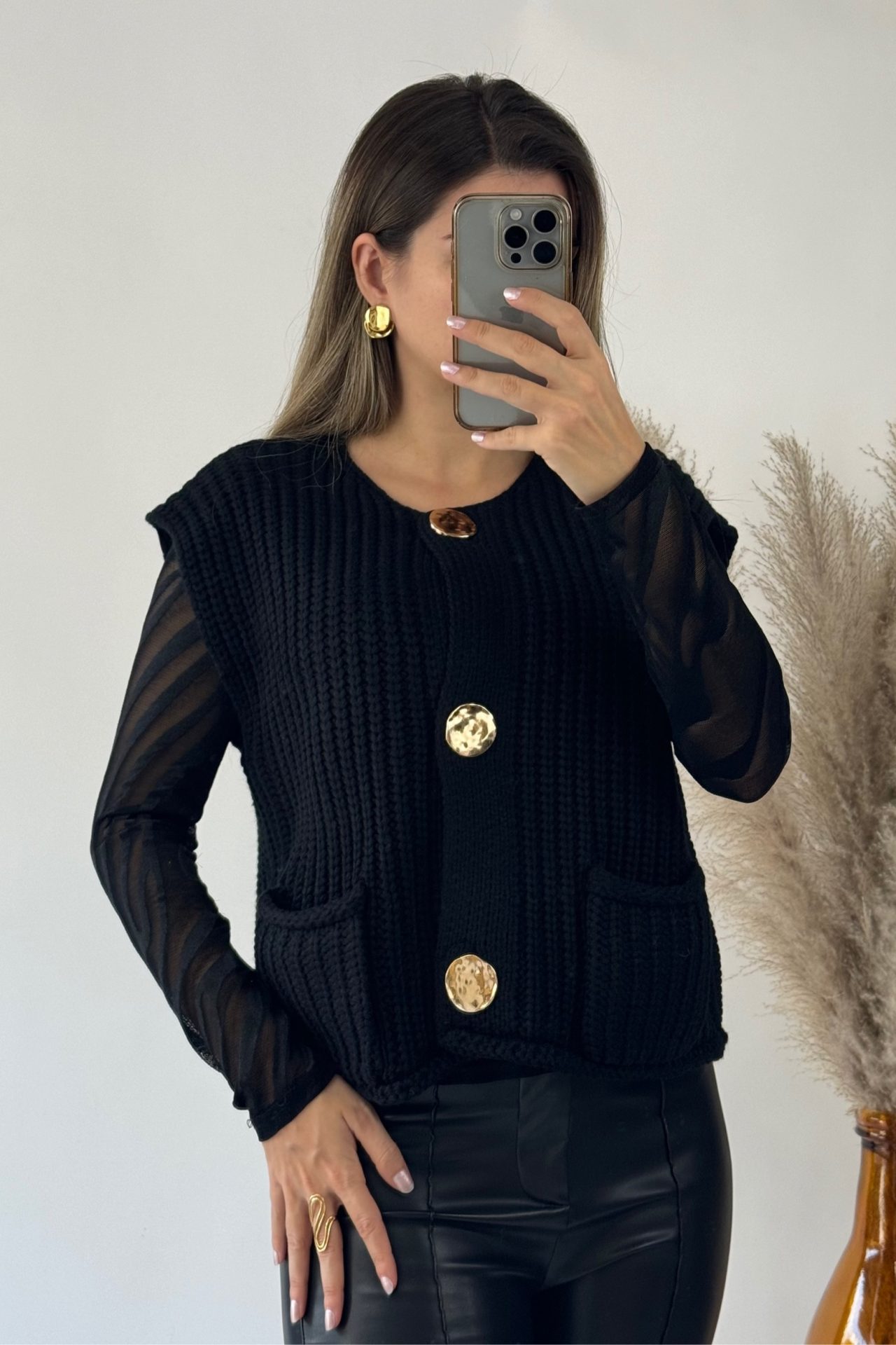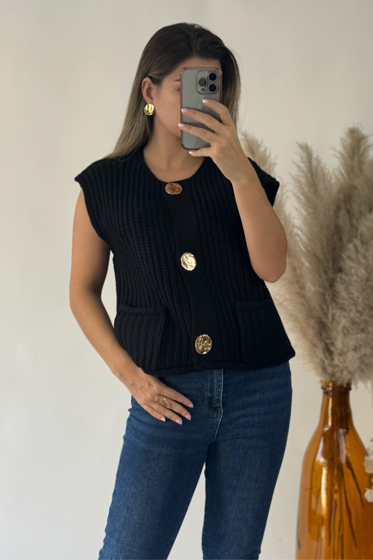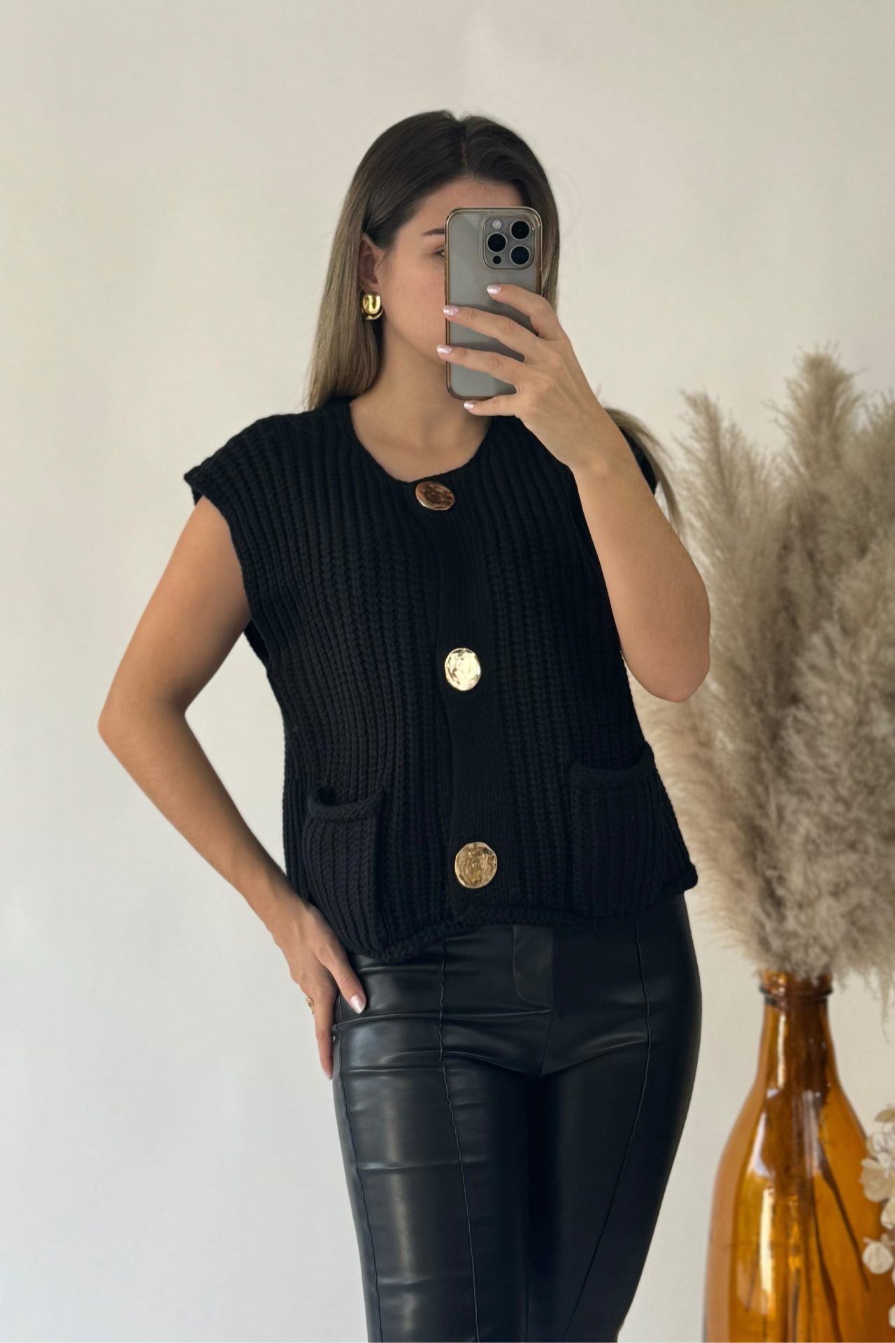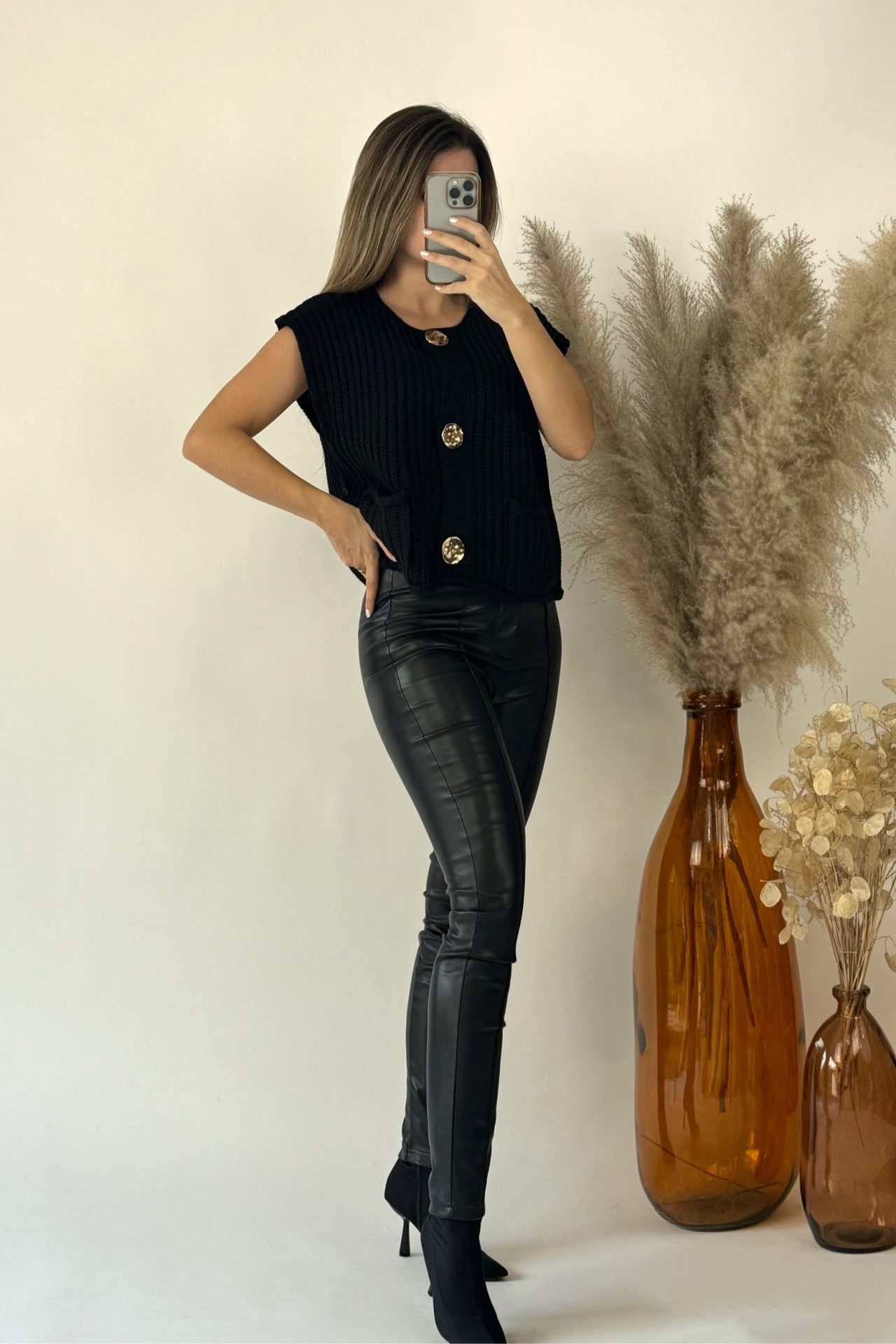 Découvrez notre gilet noir côtelé, un incontournable de votre garde-robe moderne. Confectionné dans un tissu doux et texturé, ce gilet sans manches offre une silhouette élégante.
