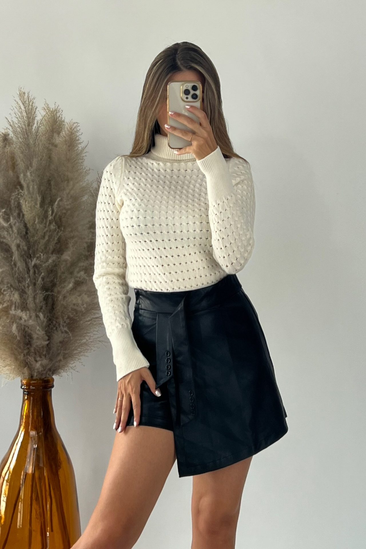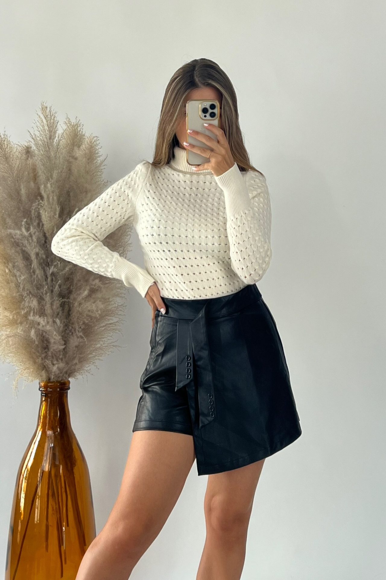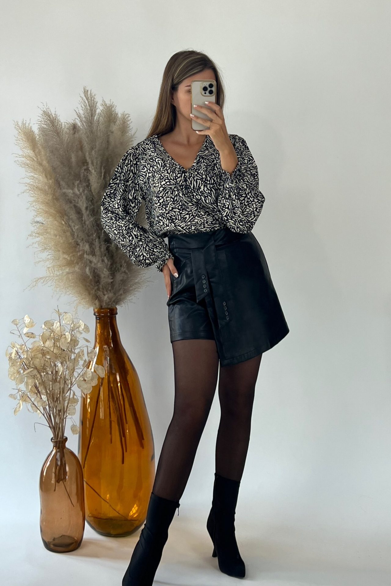La classe d’une jupe avec l’aspect pratique d’un short, c’est un vrai must have ! Avec son design audacieux, son attache à zip et sa matière simili cuir noir flatteuse. Avec cette pièce vous serez, dans tous les cas, stylée comme d’hab avec vous.
