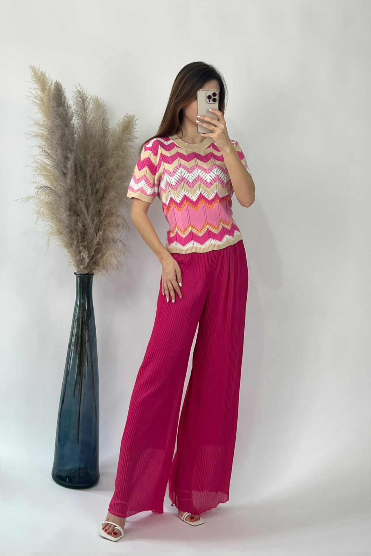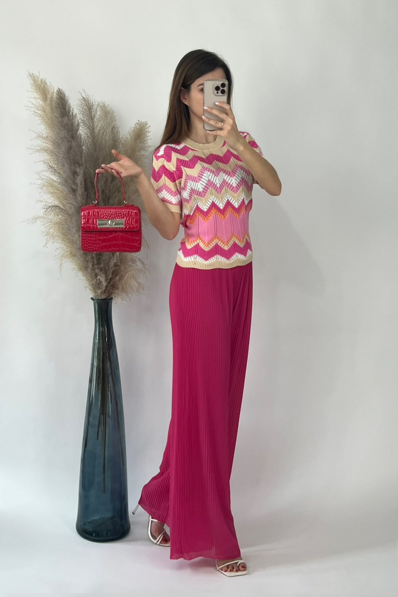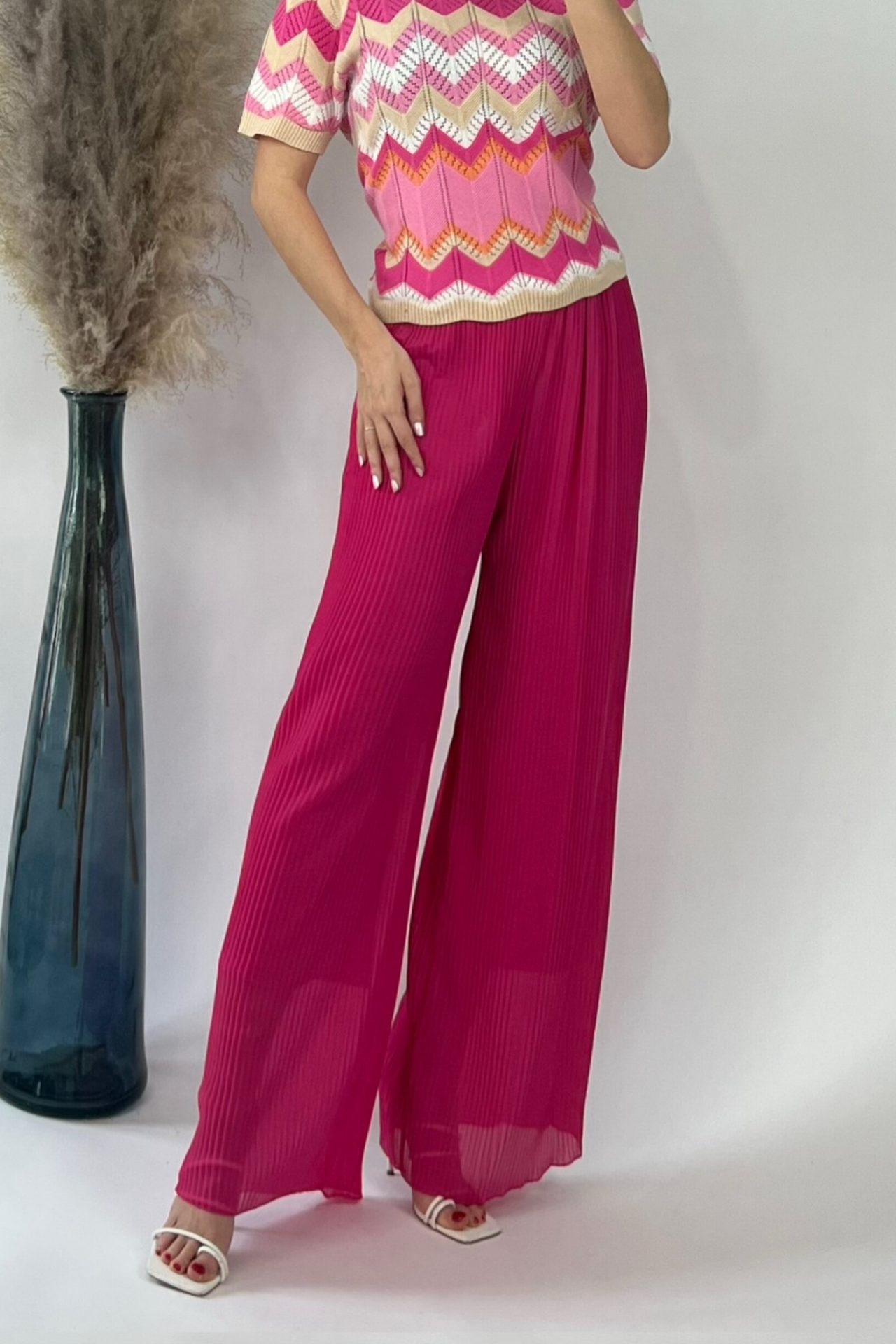 Pantalon Plissé Large Rose- Taille Haute