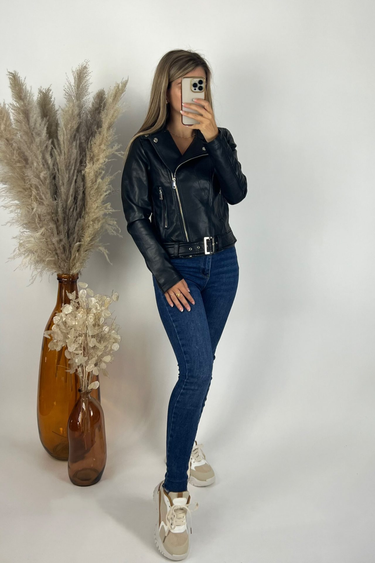 Fan de ce perfecto en similicuir de couleur noire qui se porte avec tout. On aime son design à zip et le détail de la ceinture qui offre une touche d’élégance à toutes les tenues.