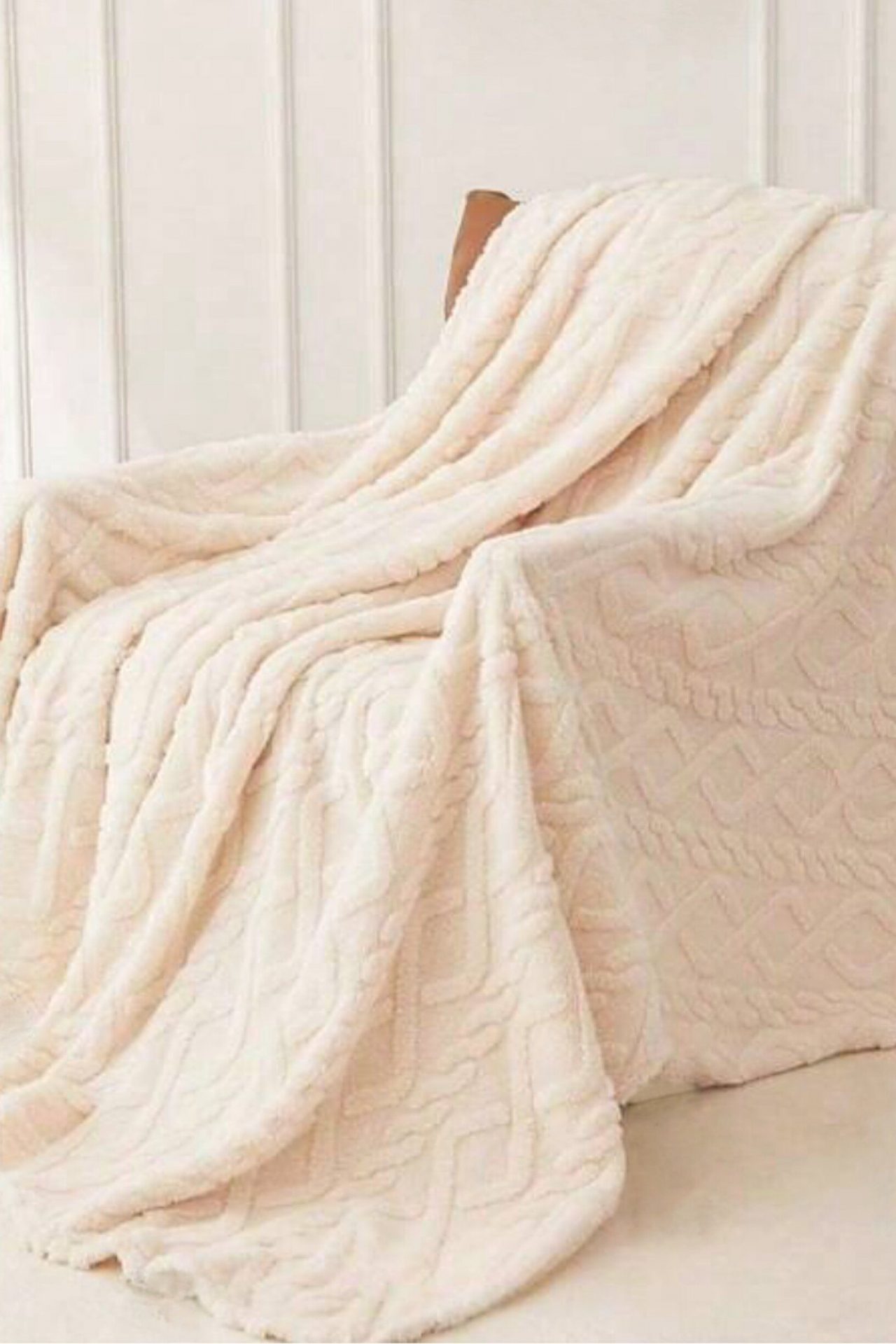 Ajoutez une touche de chaleur et de confort à votre intérieur avec notre plaid crème doux et moelleux. Ce plaid présente un motif en relief élégant semblable à un tissage, offrant non seulement une esthétique chic mais aussi une texture agréable au toucher.