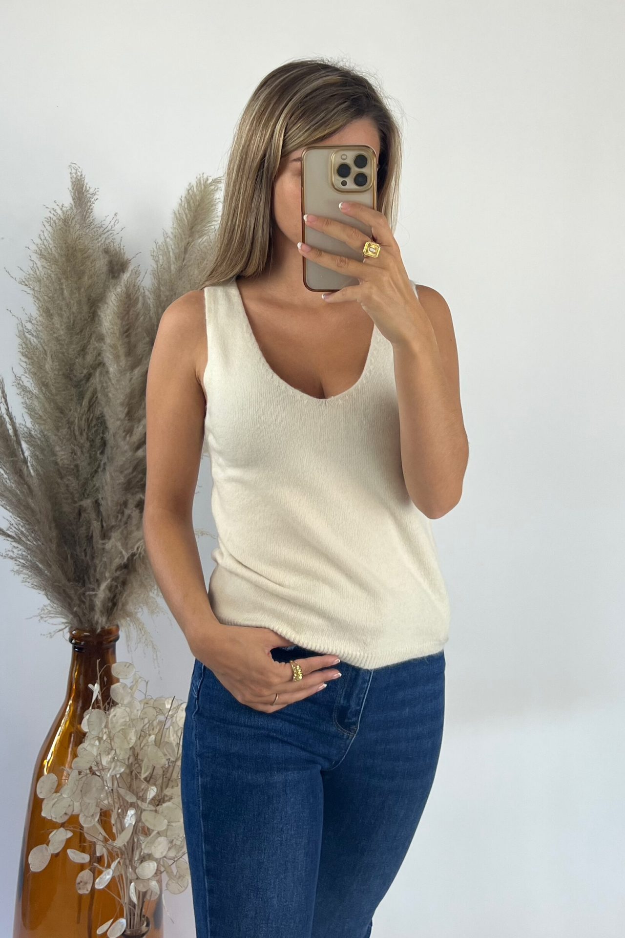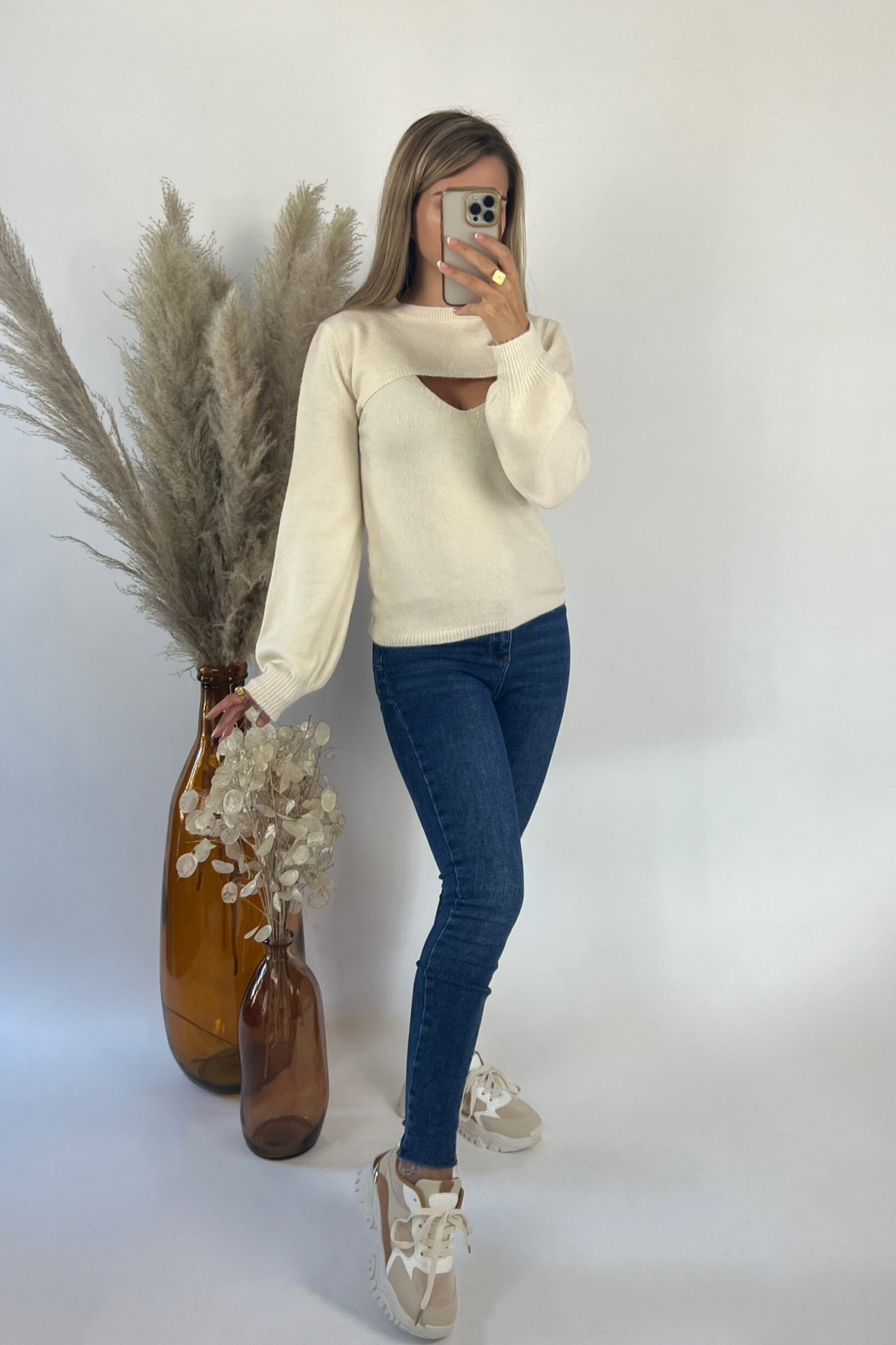 On adore l’originalité de cet ensemble 2 en 1 à la fois débardeur et pull à manches longues et sa couleur beige parfaite pour ajouter un peu de lumière à votre tenue d’hiver .