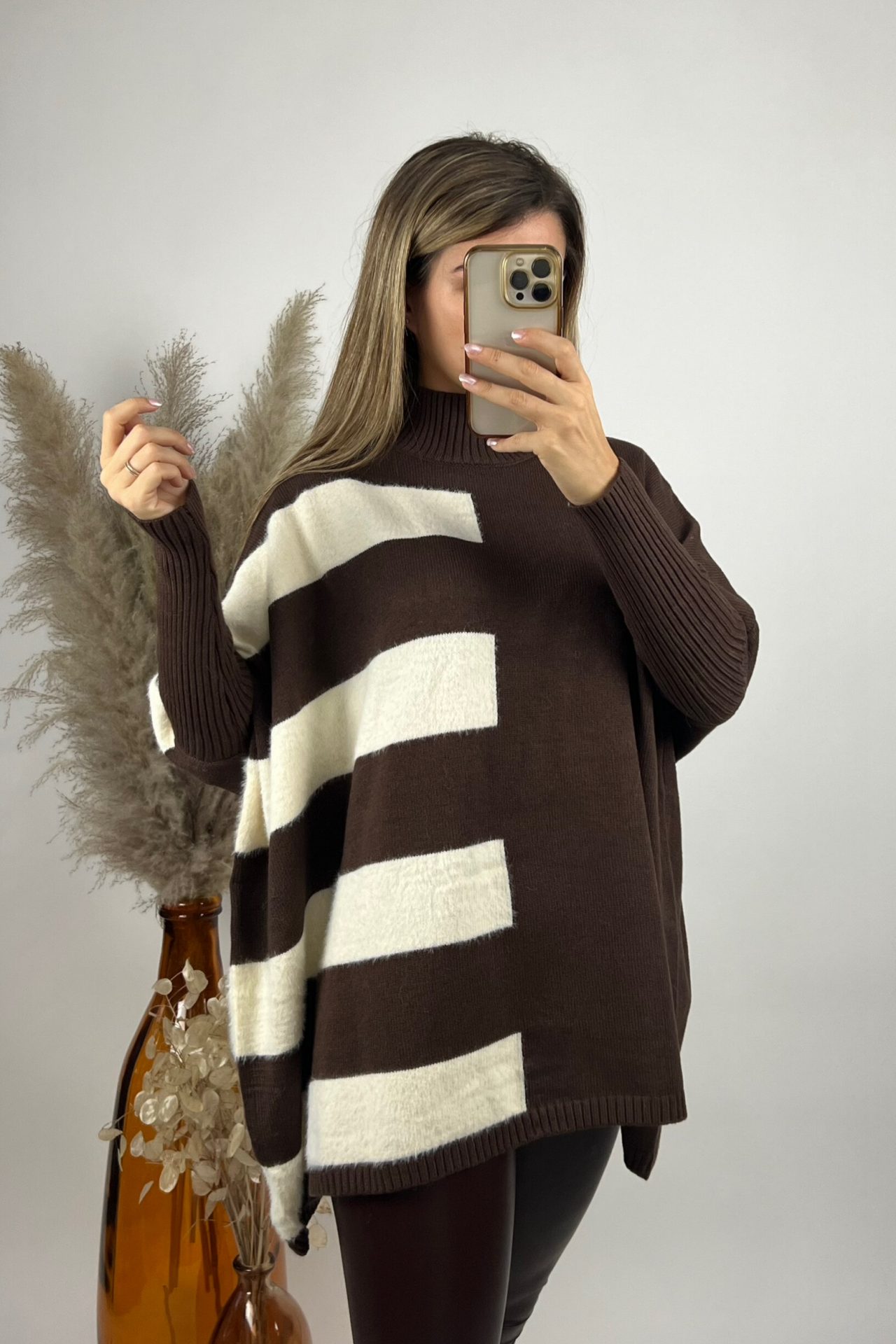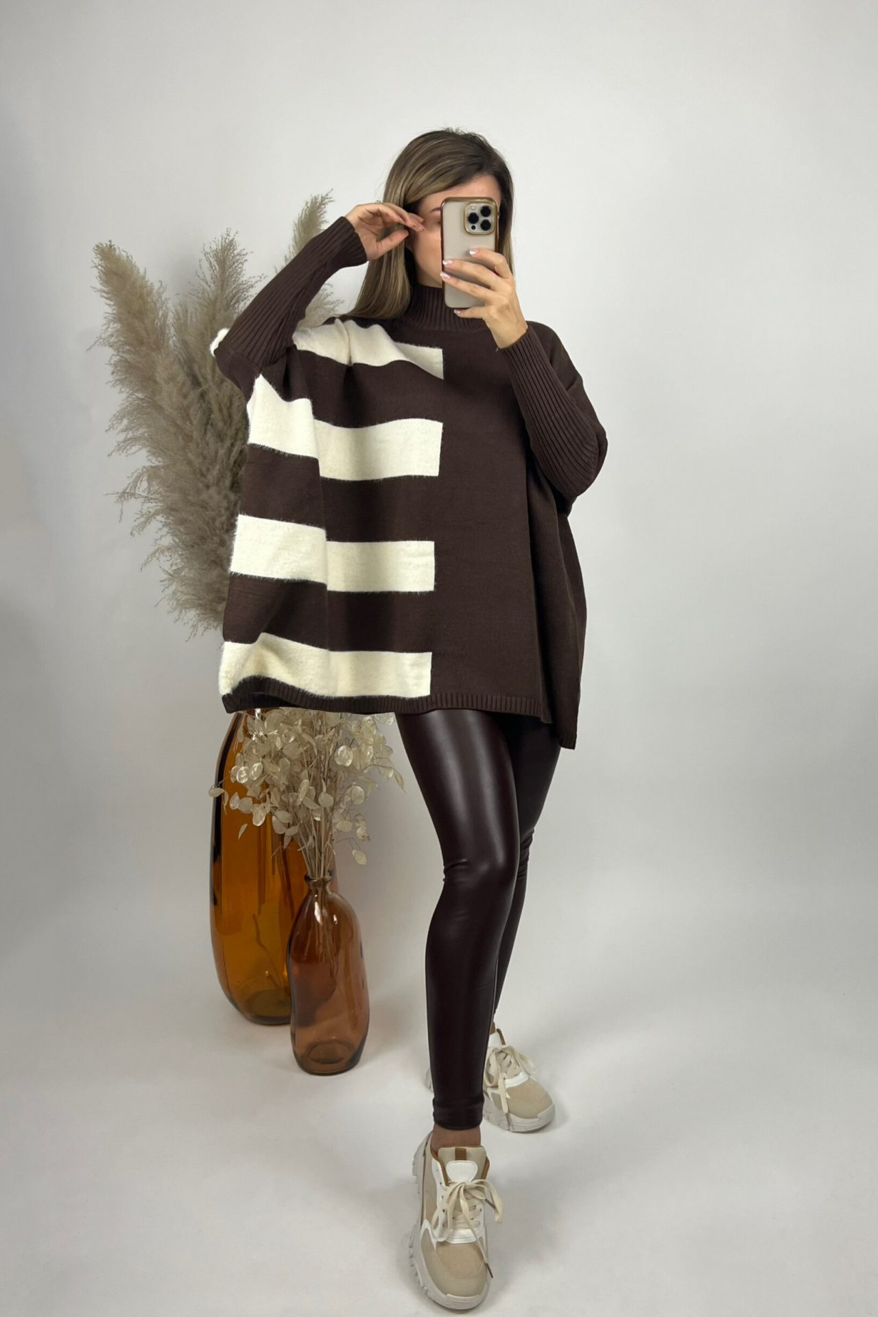On craque pour ce pull ! Avec sa coupe cosy, son magnifique coloris chocolat & blanc et ses manches chauve-souris hyper cool qui vous maintiennent bien au chaud…Difficile d’y résister !