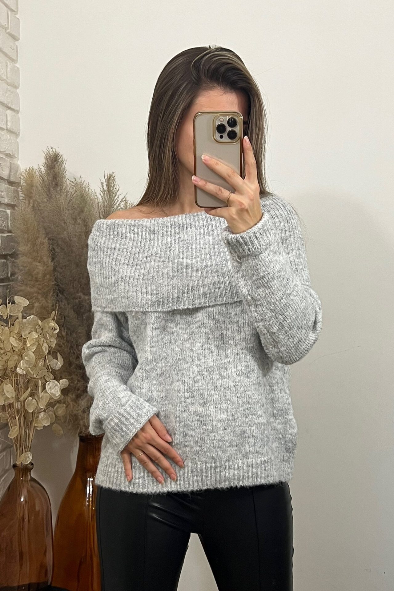 Love sur ce pull! On adore son coloris gris, sa matière trop douce et son col bardot ultra tendance en ce moment. Plus qu’à l’enfiler pour être au chaud et surtout stylée .