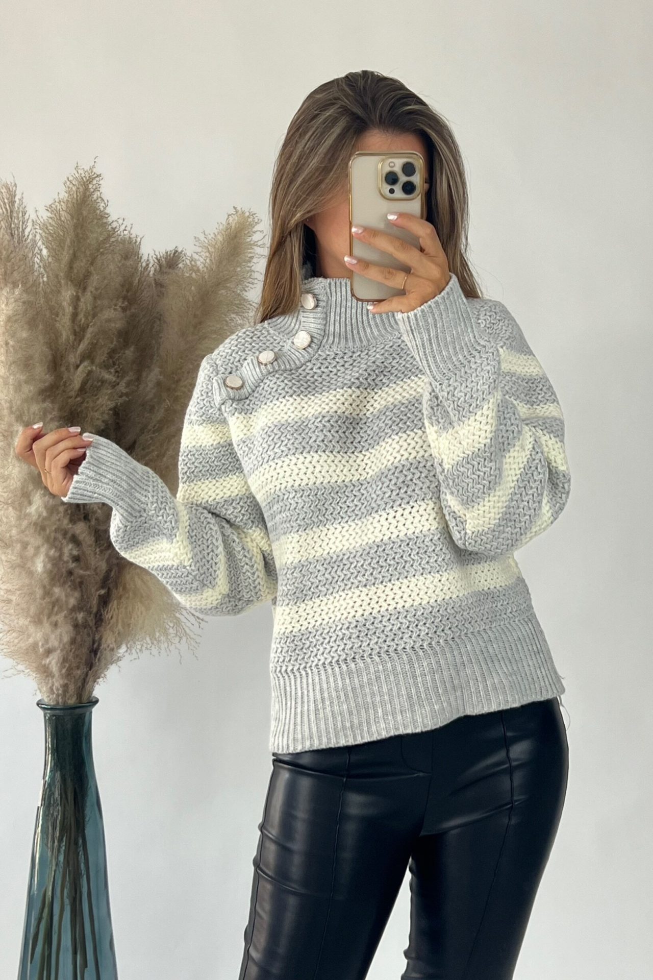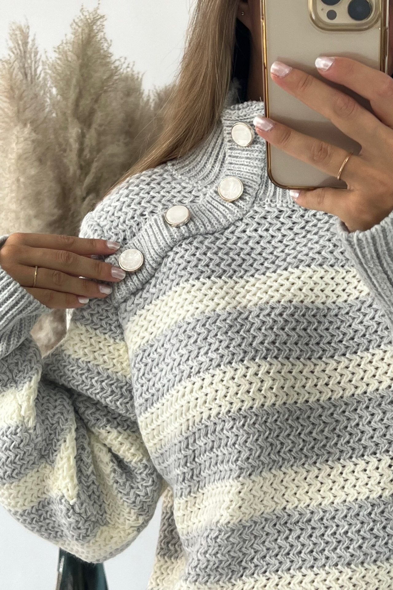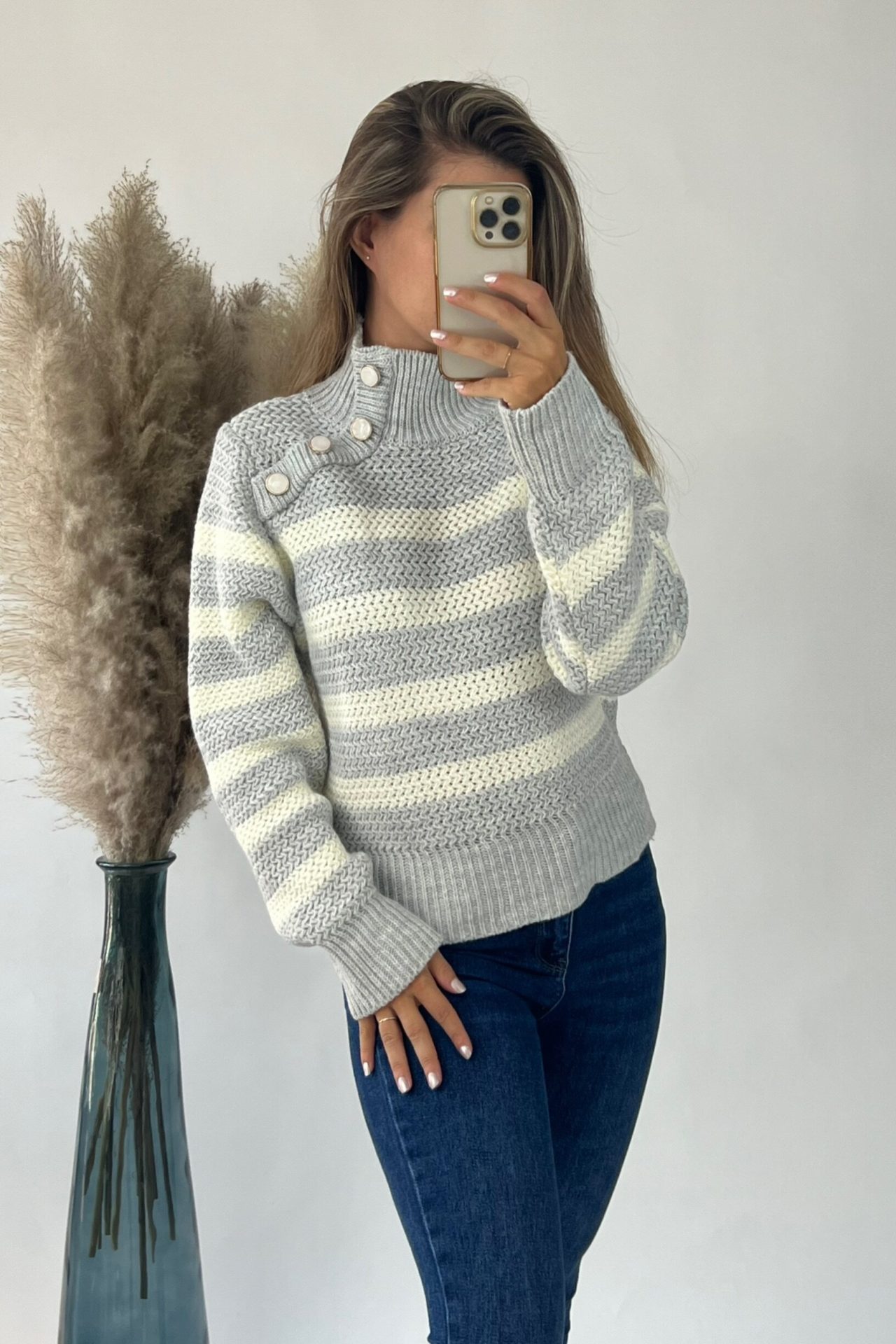 Un pull trop mim’s et joli qui nous fait fondre. Avec sa couleur gris clair , sa maille en tricot qui est trop agréable et chaude et son design avec ses boutons raffinés. Votre look fera tourner toutes les têtes !