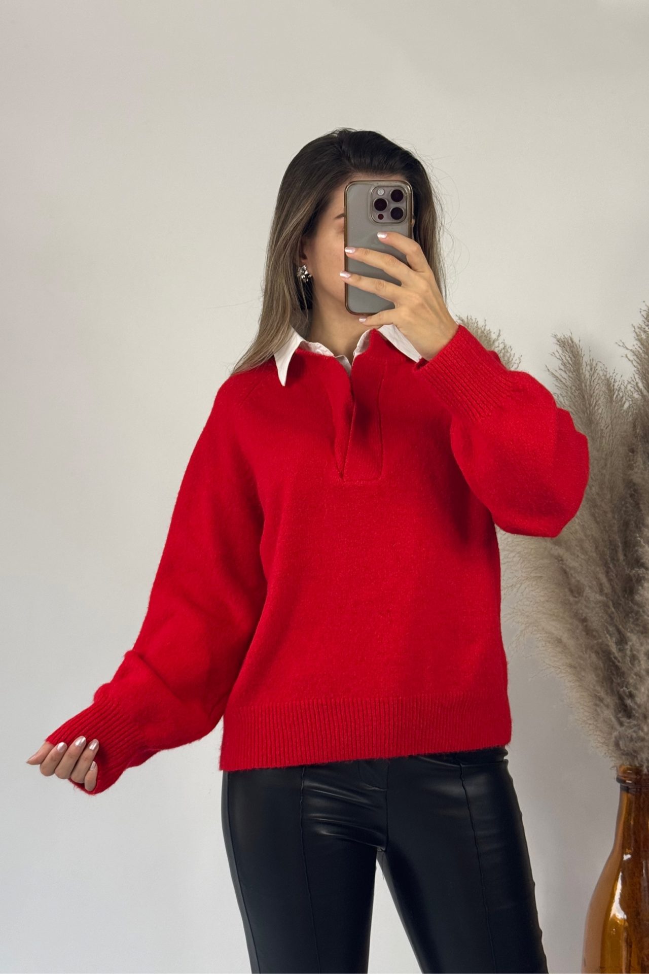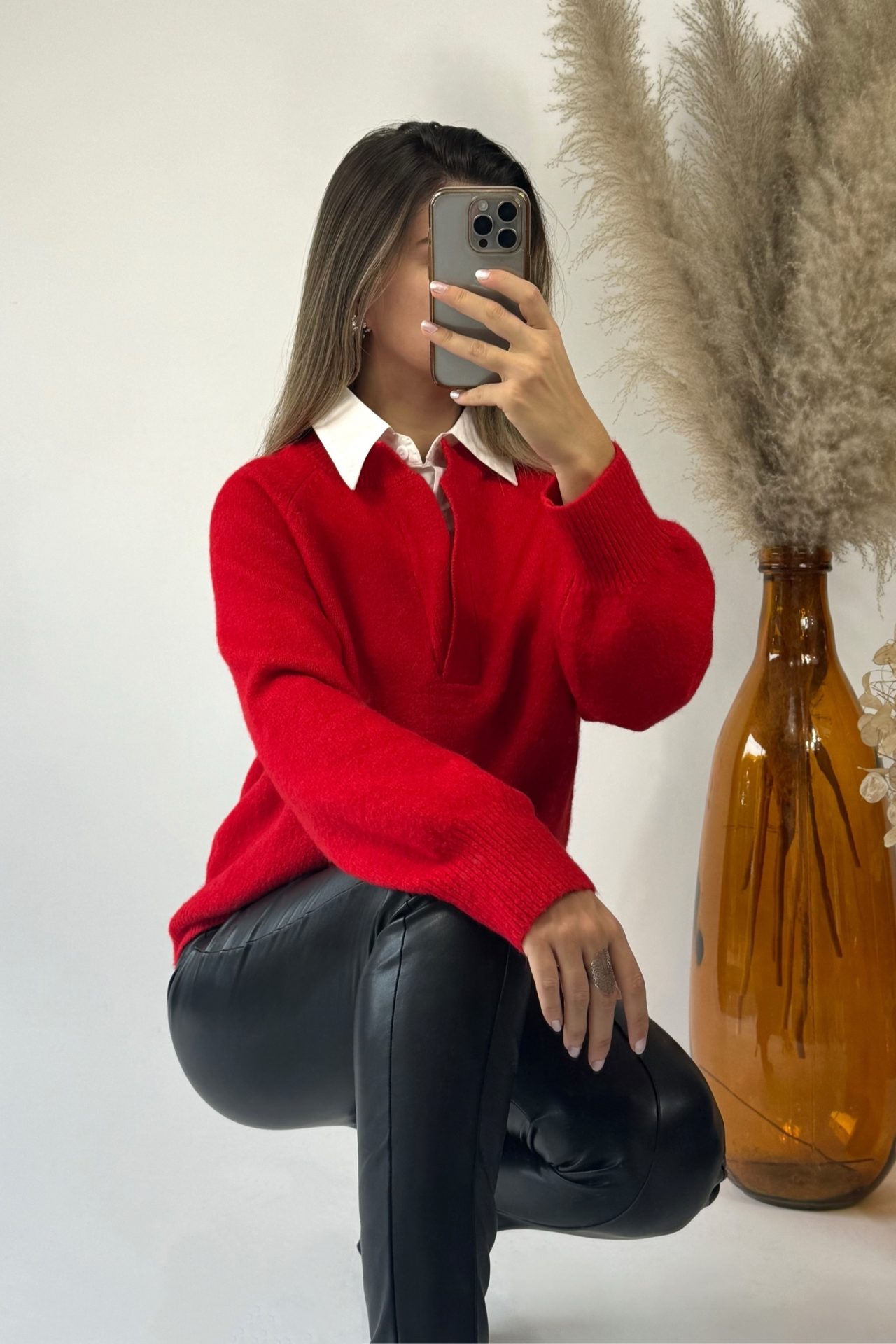 Affichez votre style avec notre pull rouge vif à col chemisier ! Conçu pour allier confort et élégance, ce modèle est parfait pour les journées fraîches.