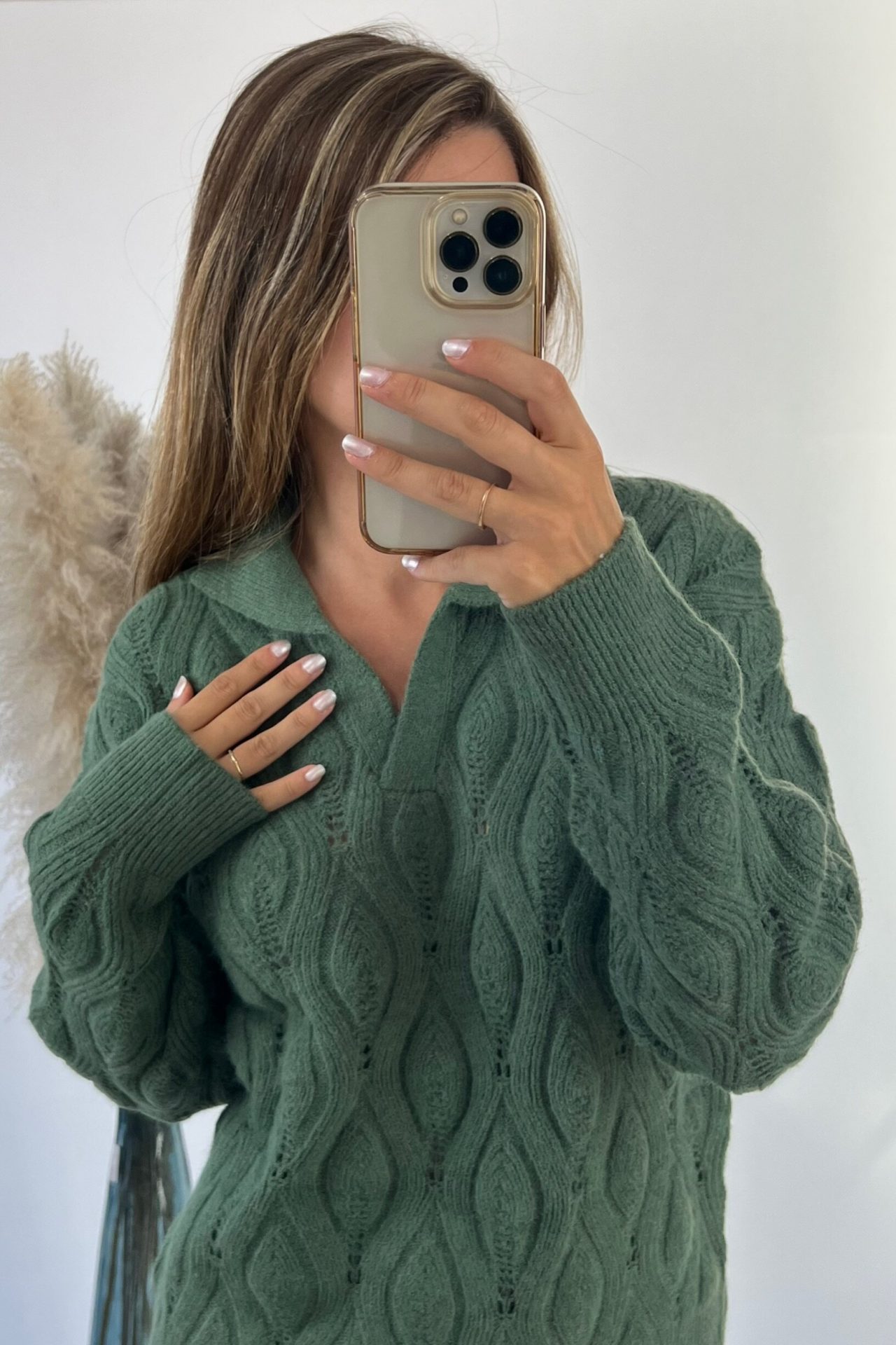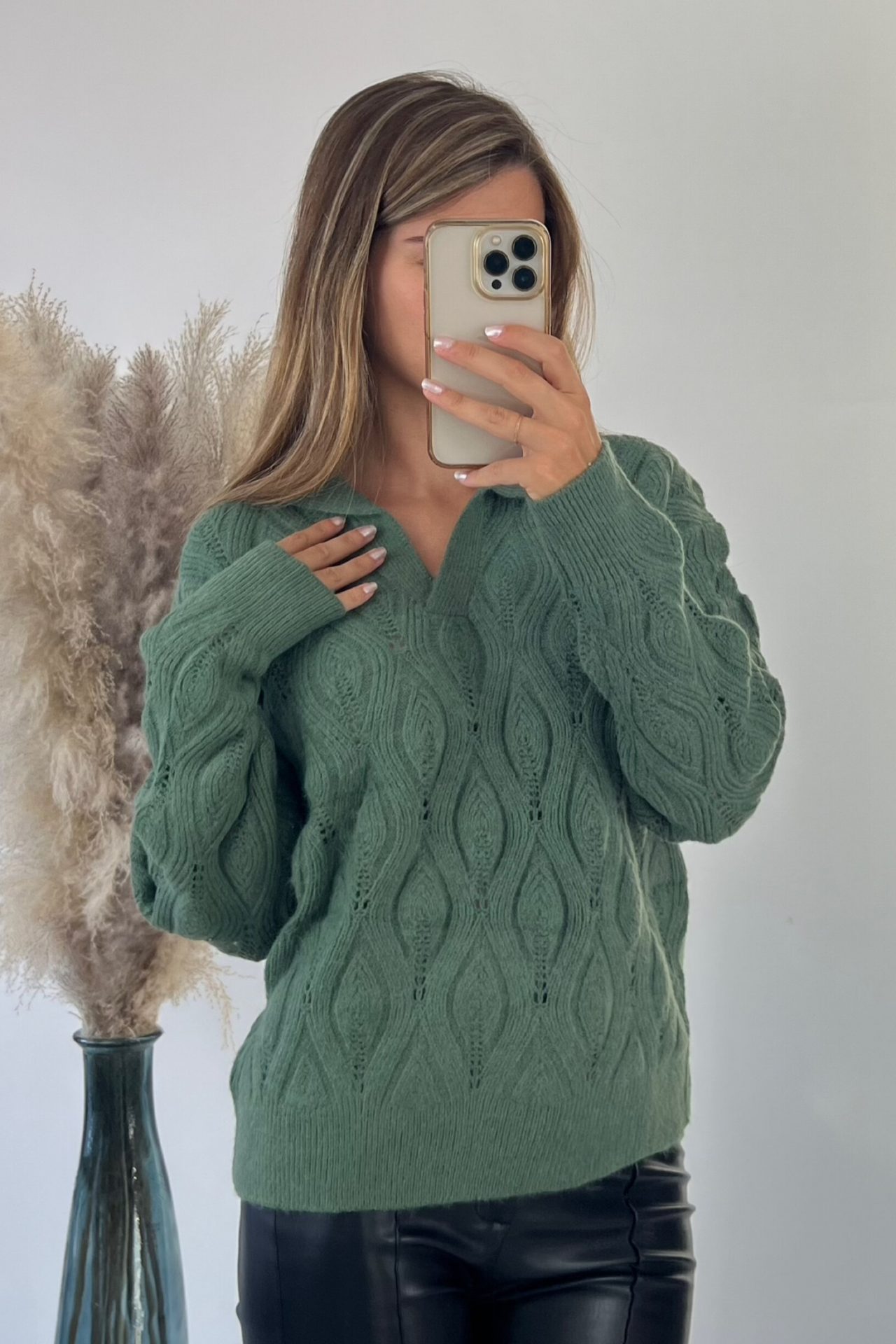 Parfait pour la saison le pull vert foncé ! Il est cosy au possible, on adore sa maille torsadée et son col ourlet pour afficher un look cosy. Il est adapté pour tous les jours de la semaine! Vous êtes sensationnelle !