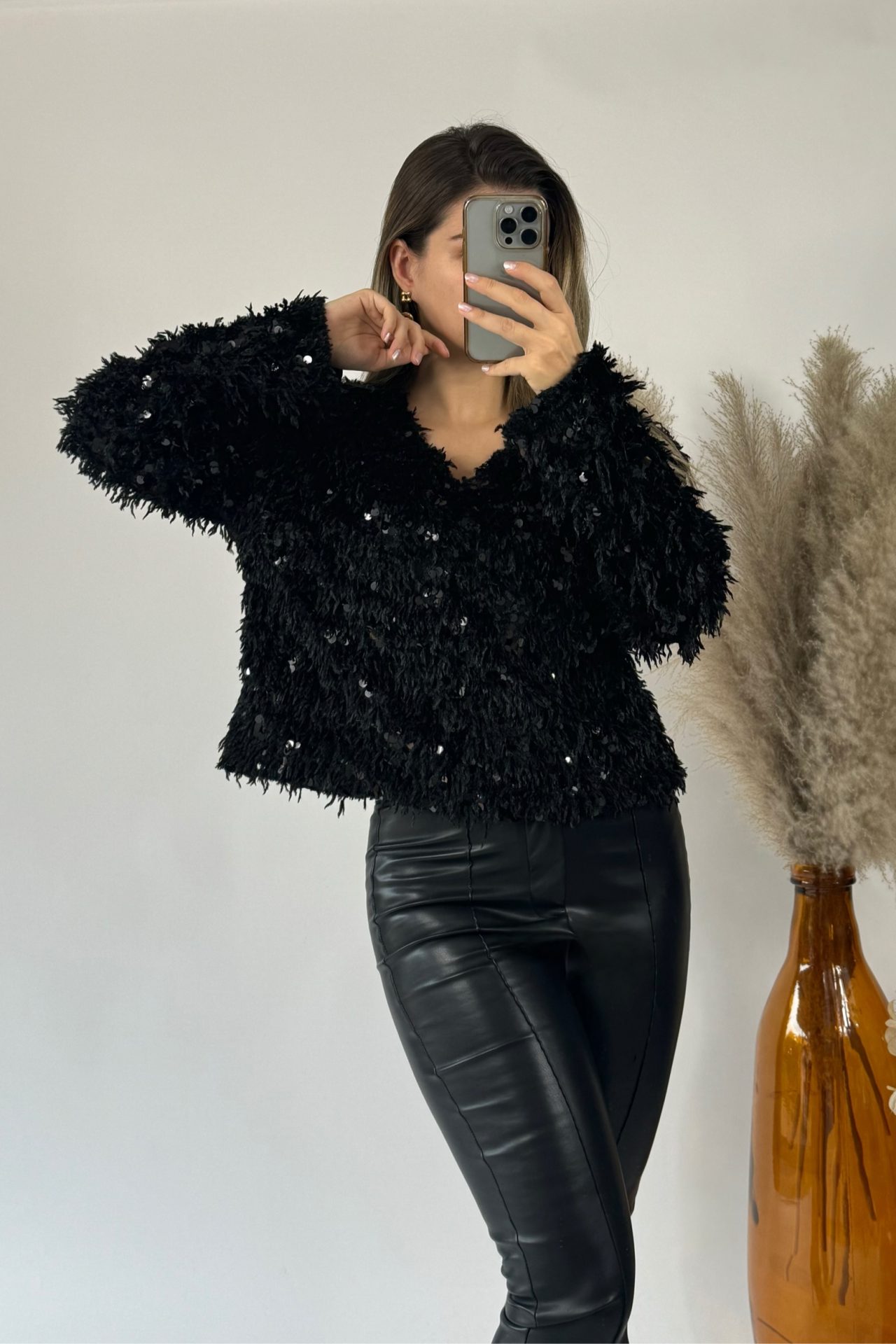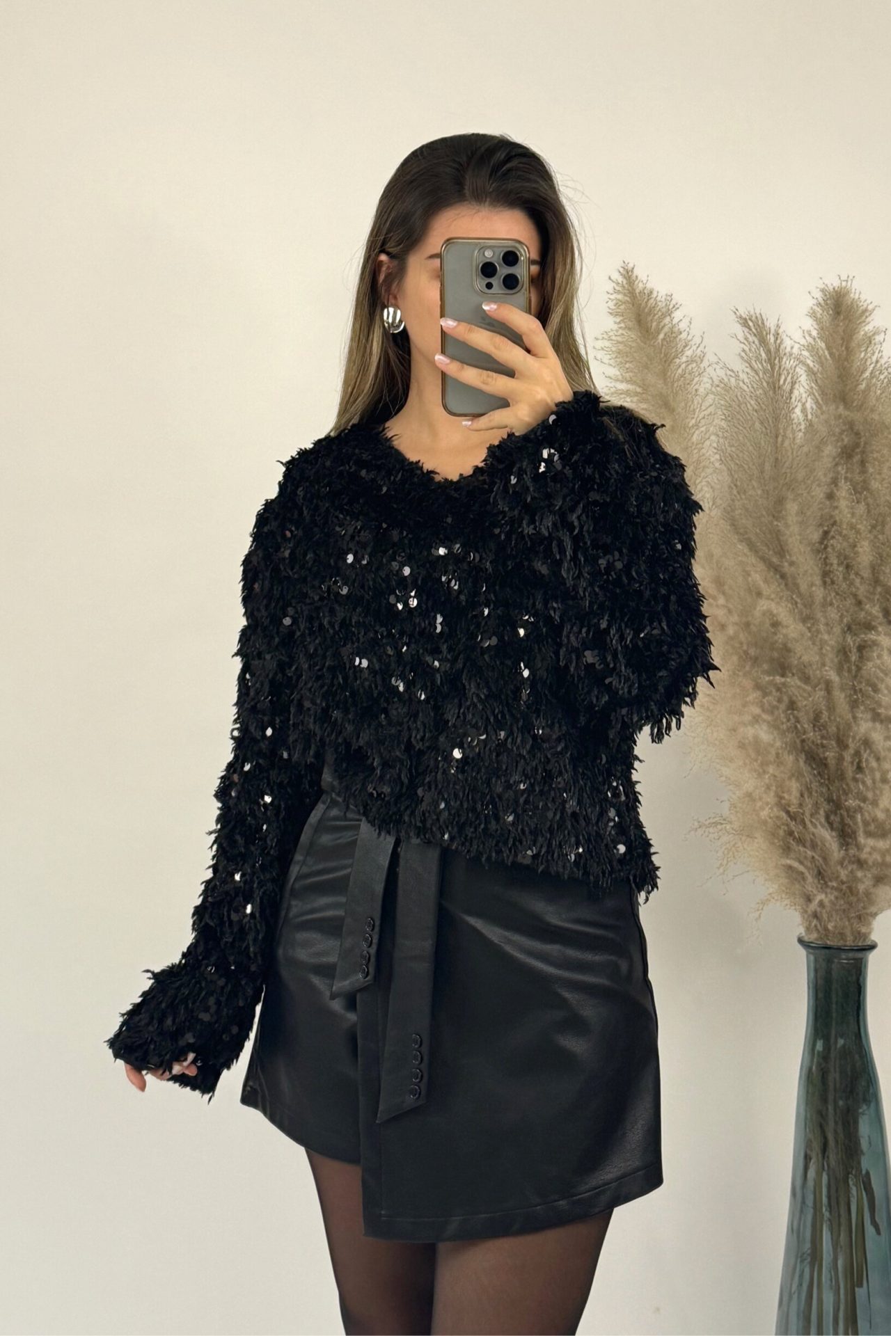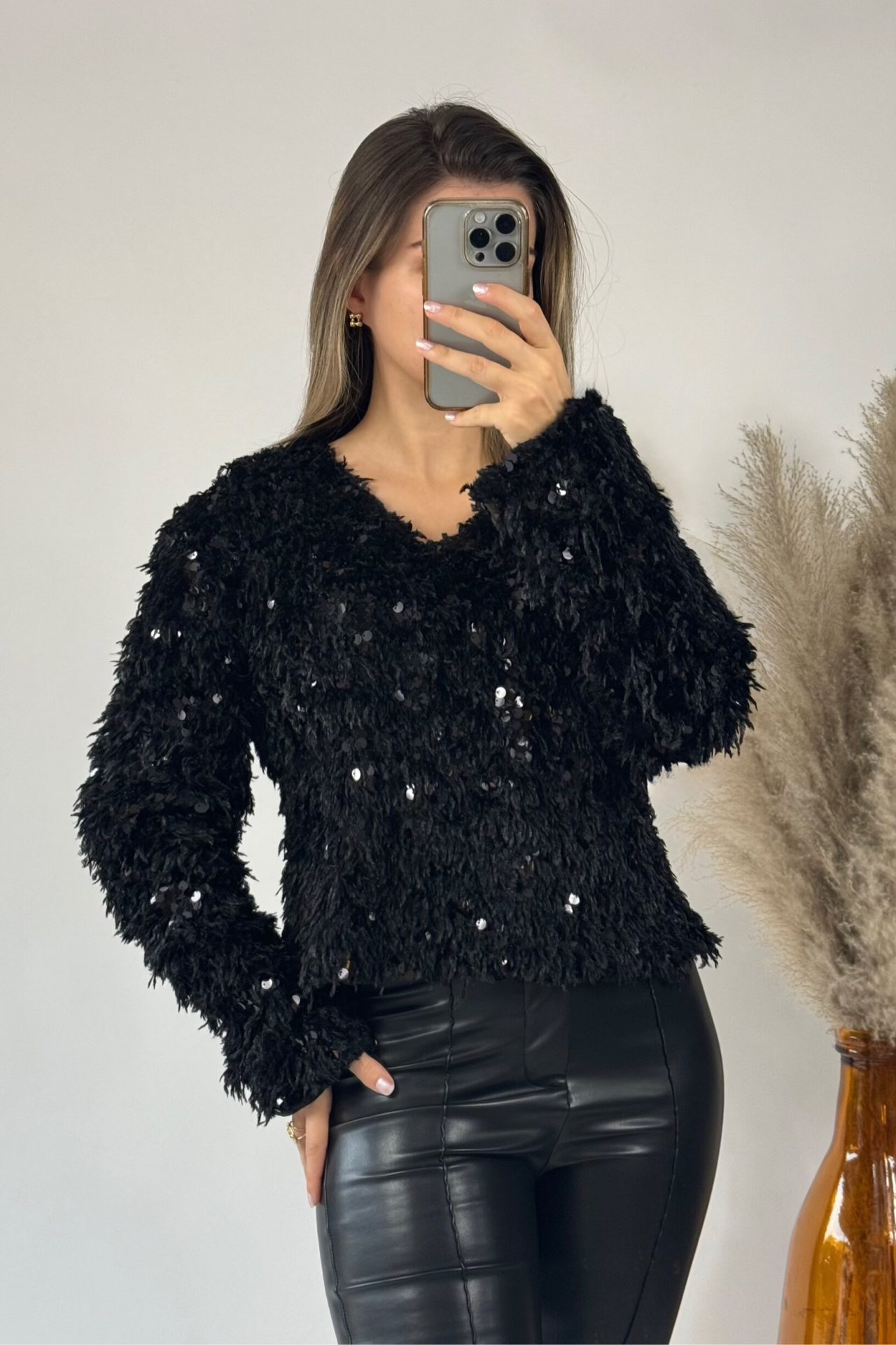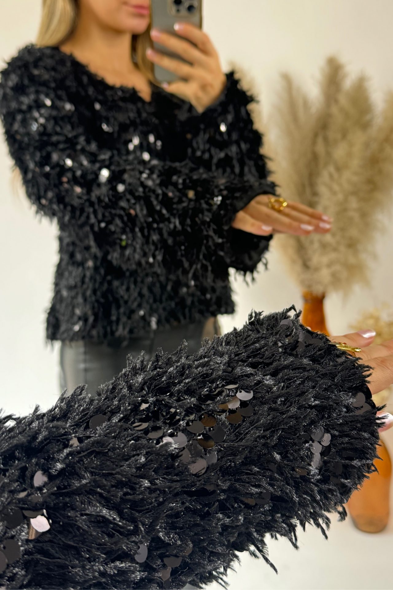 Tellement canon ce top! On est fan de cette pièce, entre sa matière et ses sequins brillants qui font toute la différence. Le gros plus de ce top c’est sa doublure: il est chaud et doux vraiment hyper confortable à porter c’est tout ce que l’on aime. Ce top coche toutes les cases plus qu’à faire sensation à la prochaine soirée!