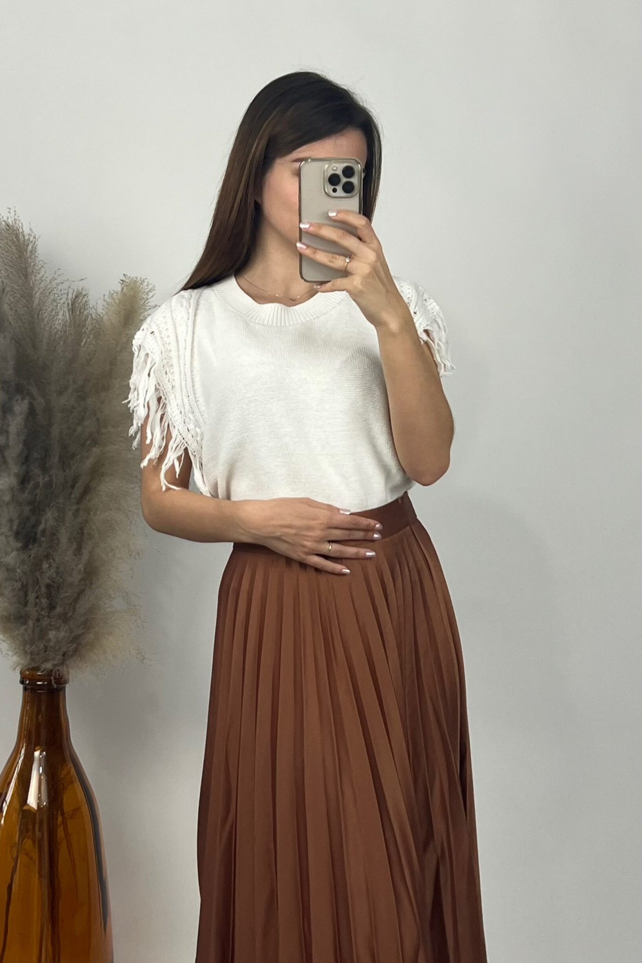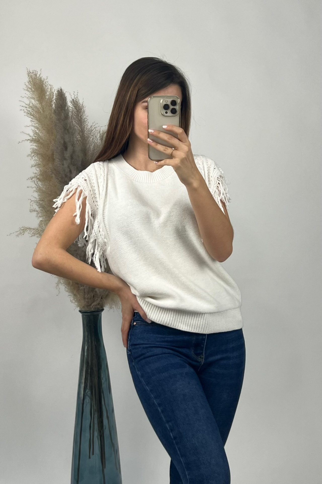 Beaucoup trop mims, ce top! Avec ses manches à franges et sa broderie. On crush totalement dessus. Optez pour un look bohème-chic en toute simplicité!