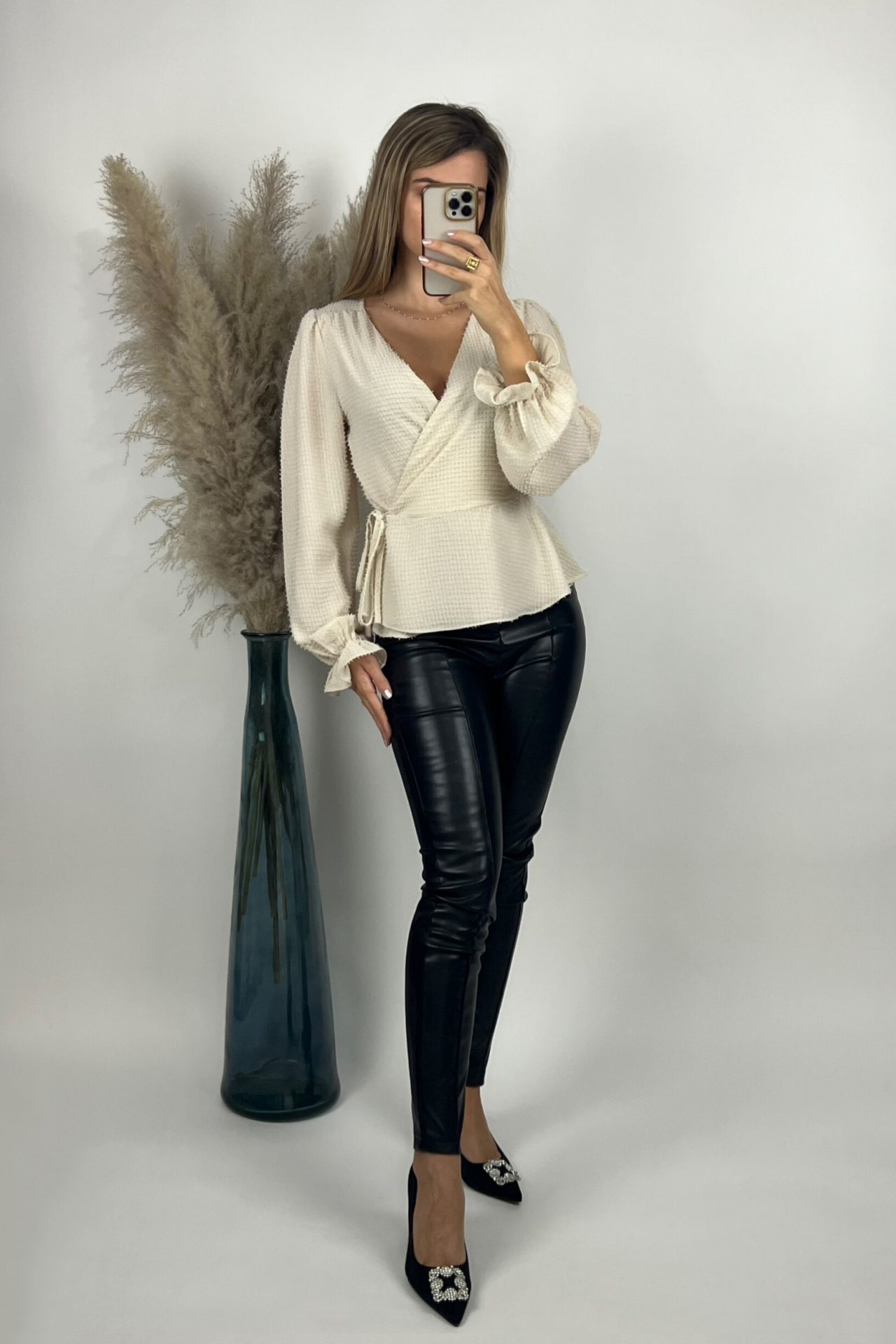 Tellement joli ce top cache-cœur. On aime son design plumetis légèrement scintillant, ses manches volantes et son laçage qui mettra votre taille en valeur. Plus qu’à ajouter un bas en simili cuir pour un look ultra canon !